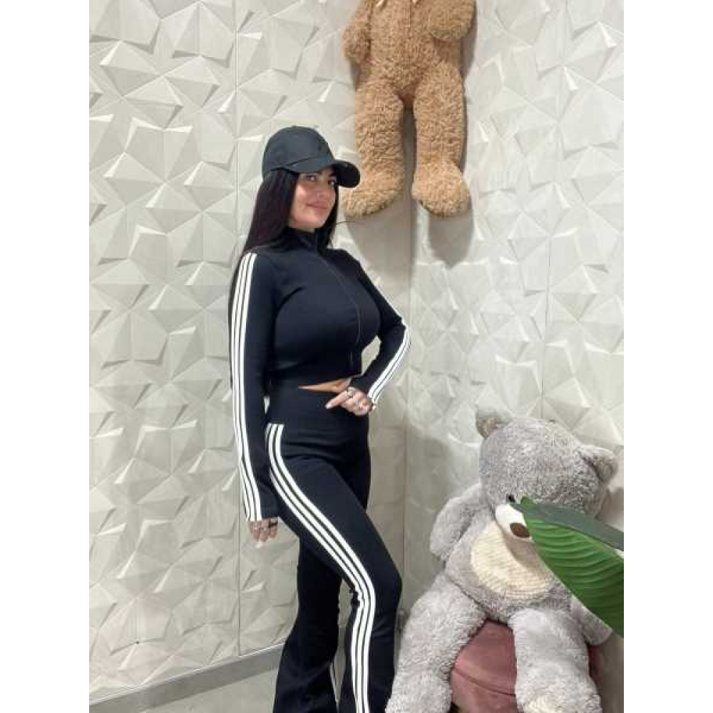 Coordinato a costine pesante composto da leggins a zampa e giacca crop con manica A guanto..