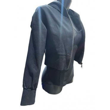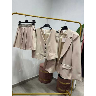 coordinato ruches mood Lumina con gonna vita alta , con ruches alla fine e cerniera nascosta. Giacca..