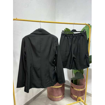 TAILLEUR COMPOSTO DA BERMUDA CON ELASTICO SUL RETRO E BOTTONE, GIACCA CON BOTTONE E POLSINI BIANCHI ..