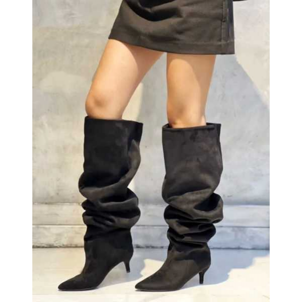 Modello: Cuissard (sopra al ginocchio) con gambale ampio e arricciato per un effetto morbido e sofisticato.