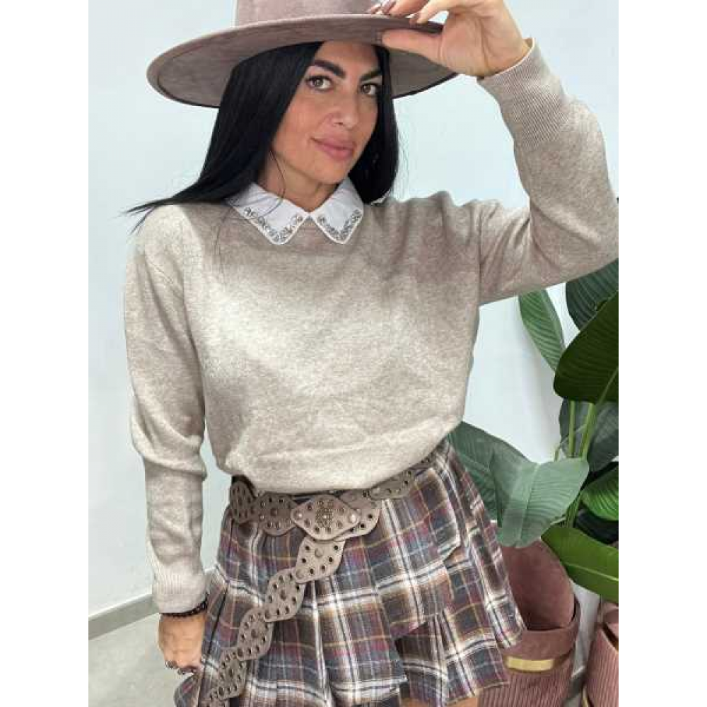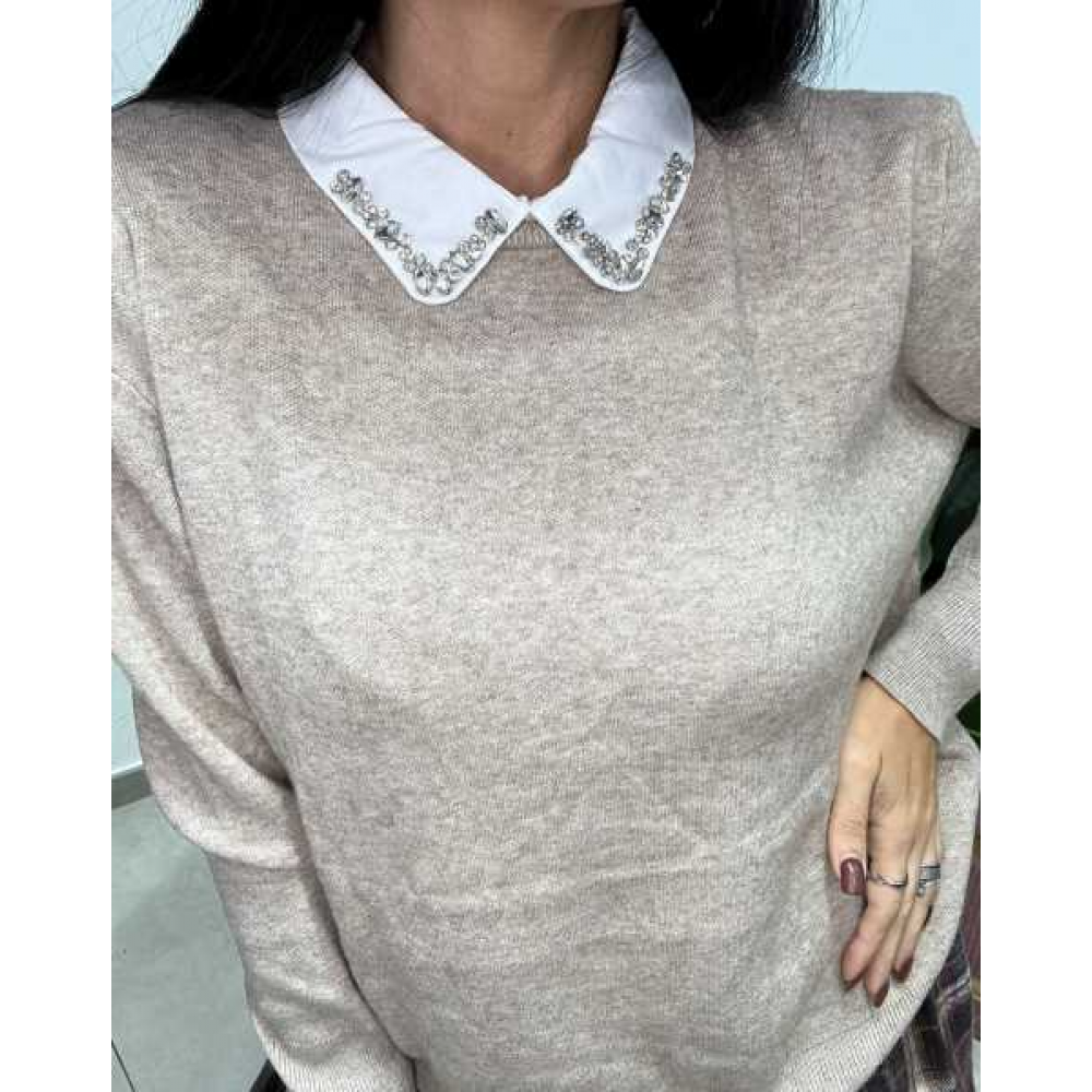 Maglioncino con colletto camicia e applicazione dettagli in argento, Tessuto morbido e di ottima qualità veste fino ad una taglia L