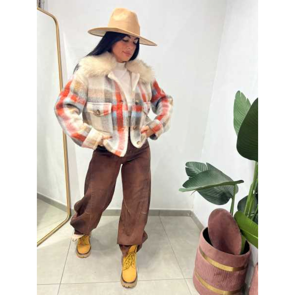 Cappotto in lana, foderato con tasche a toppa e colletto in eco-pelliccia. Veste dalla XS alla L