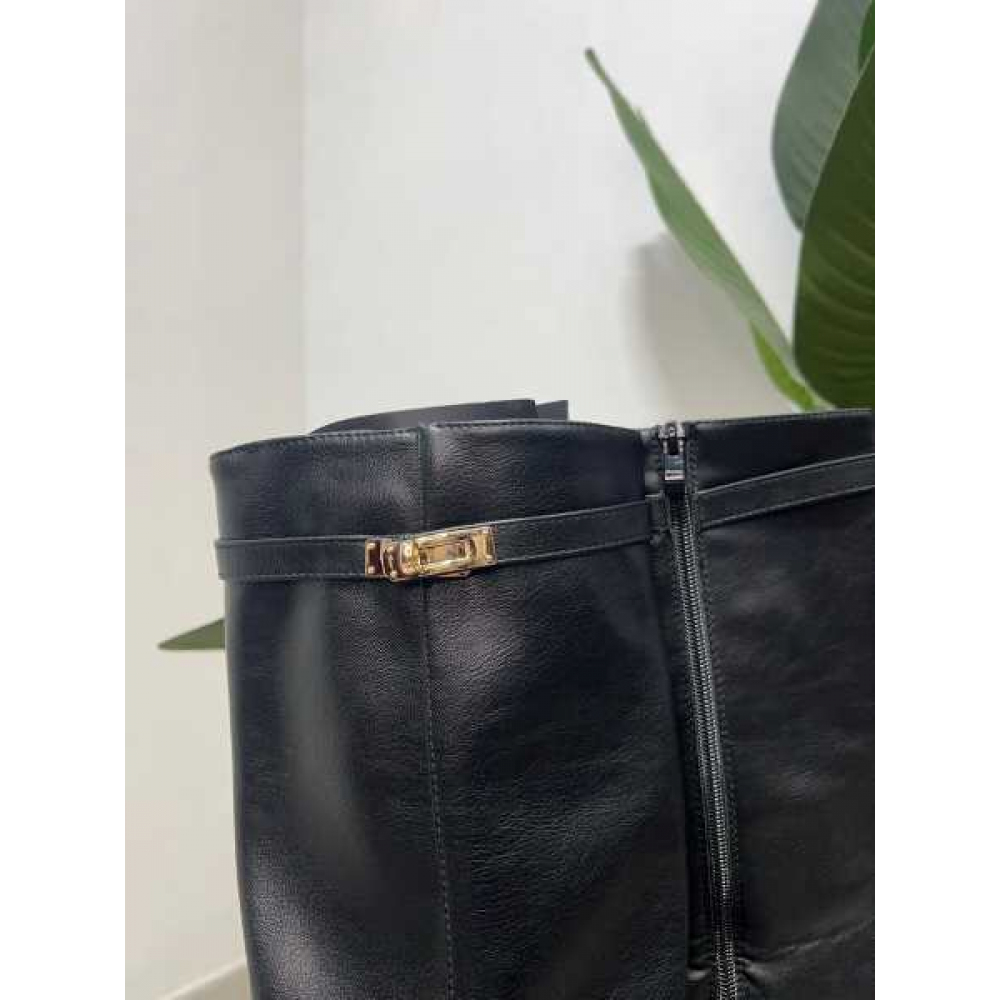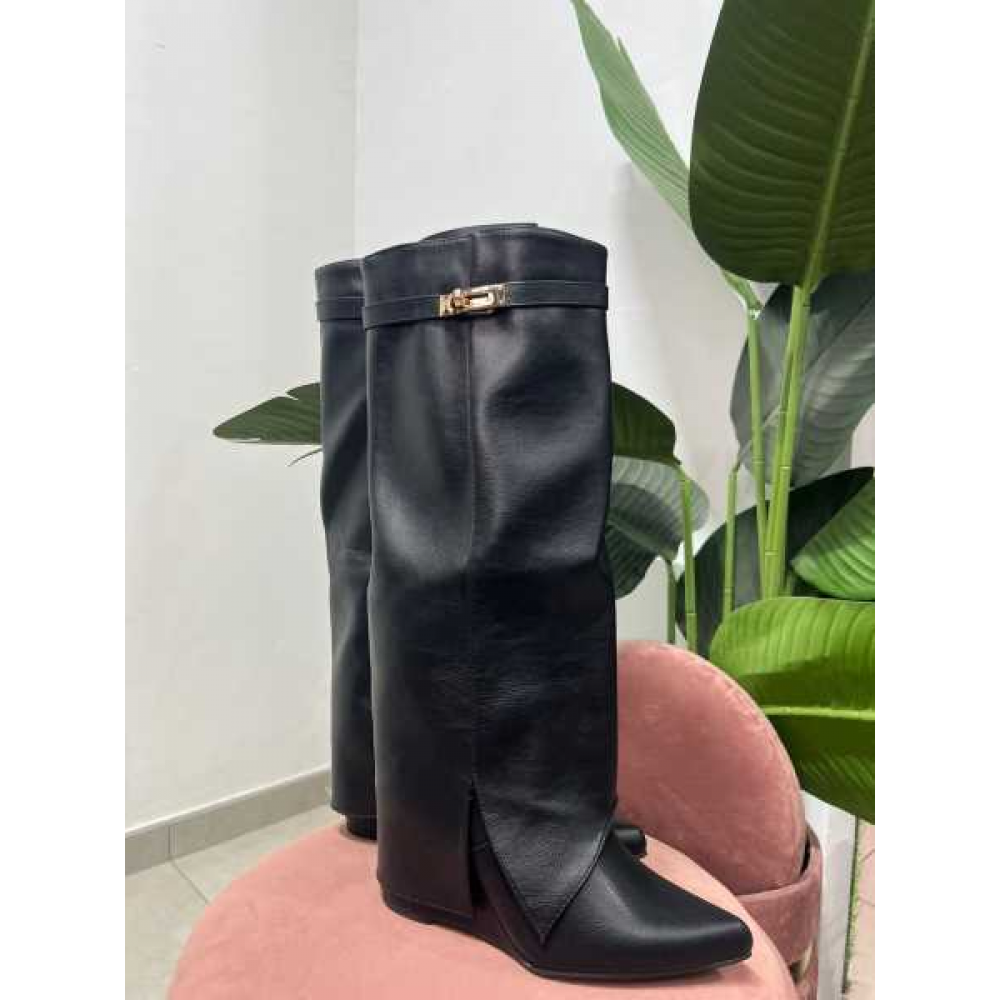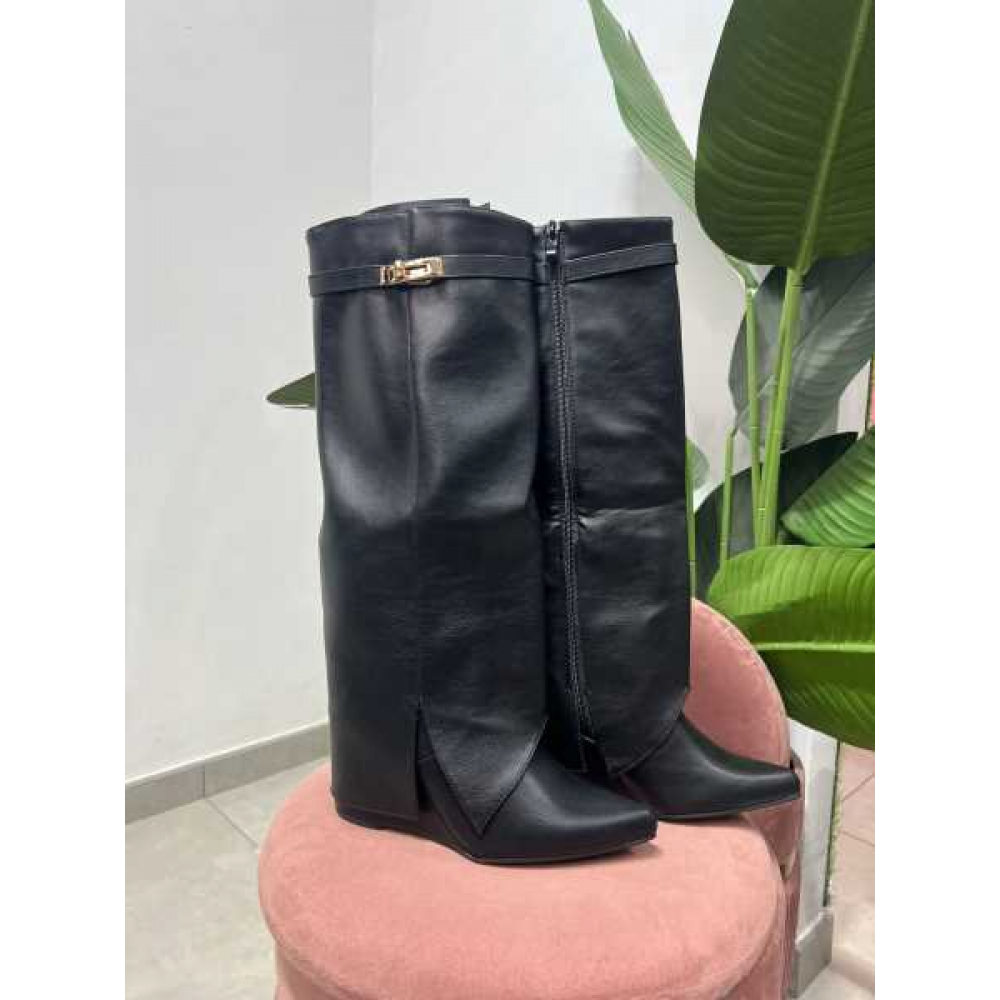 Stivali con Ghetta e Fibbia Dorata Zeppa Alta