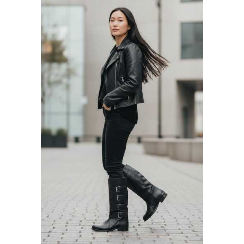 stivale con fibbie con cinturini laterali, tessuto eco pelle