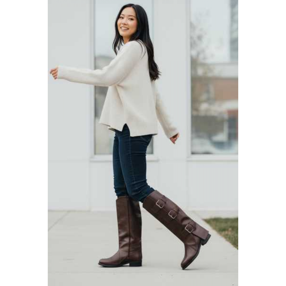 stivale con fibbie con cinturini laterali, tessuto eco pelle