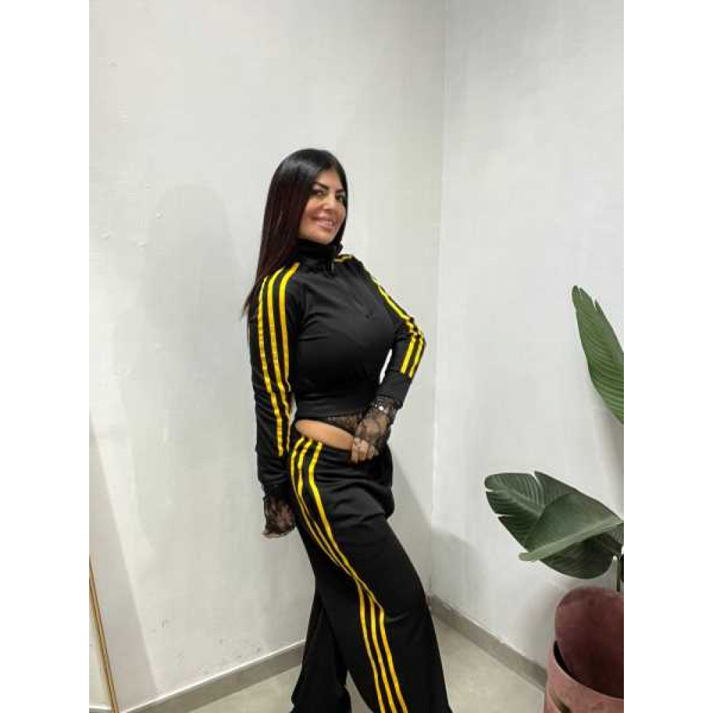 tuta composta da pantalone tuta con elastico e felpa a body con dettagli pizzo tg unica veste da una xs ad una M+