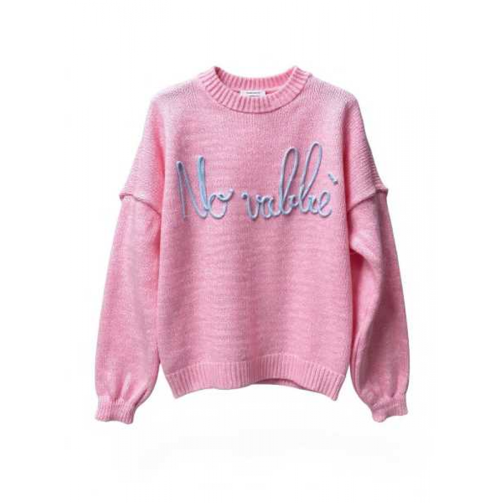 Pull collo rotondo con maniche a palloncino e scritta ricamata in rilievo