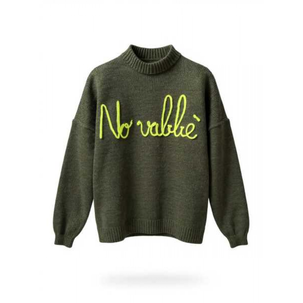 Pull collo rotondo con maniche a palloncino e scritta ricamata in rilievo