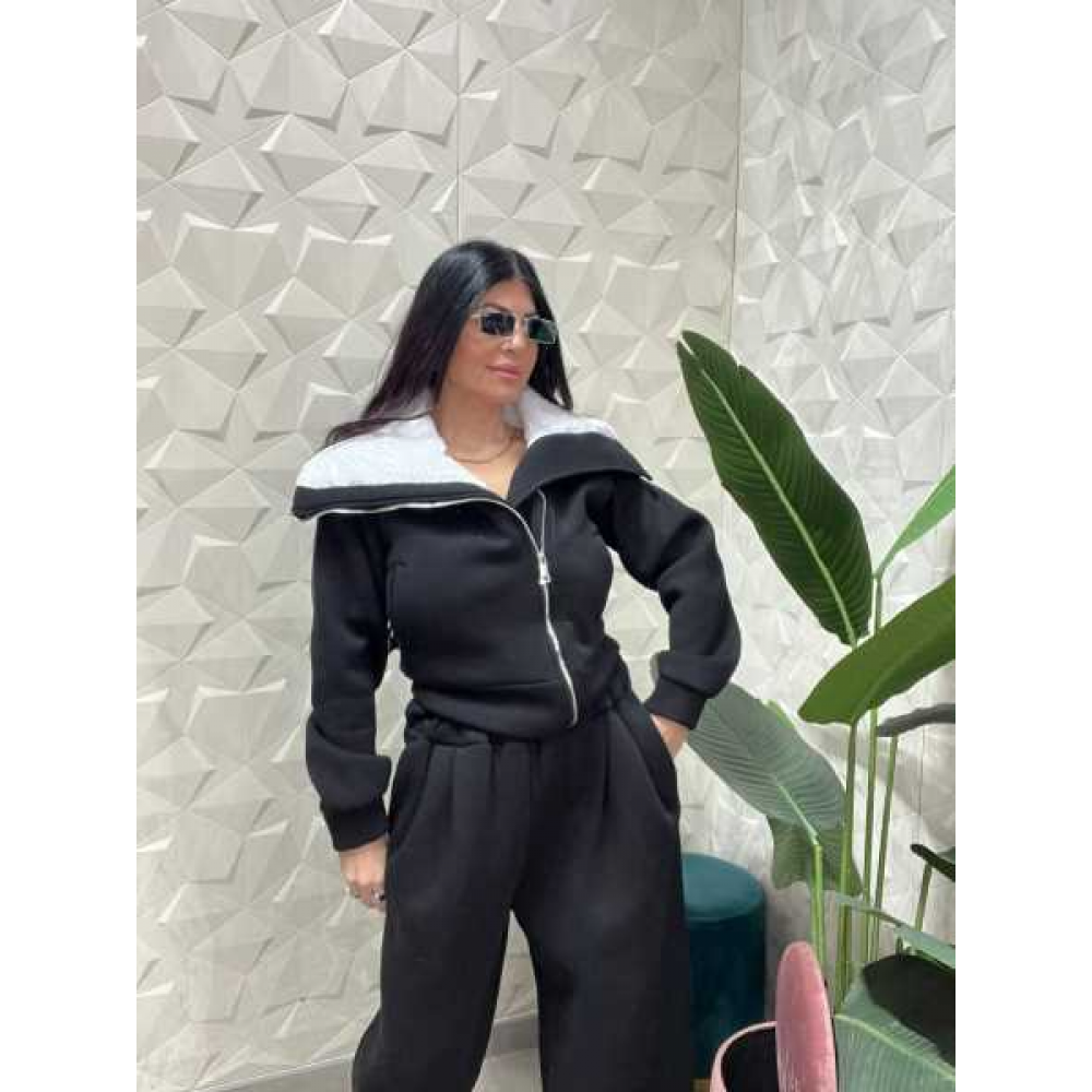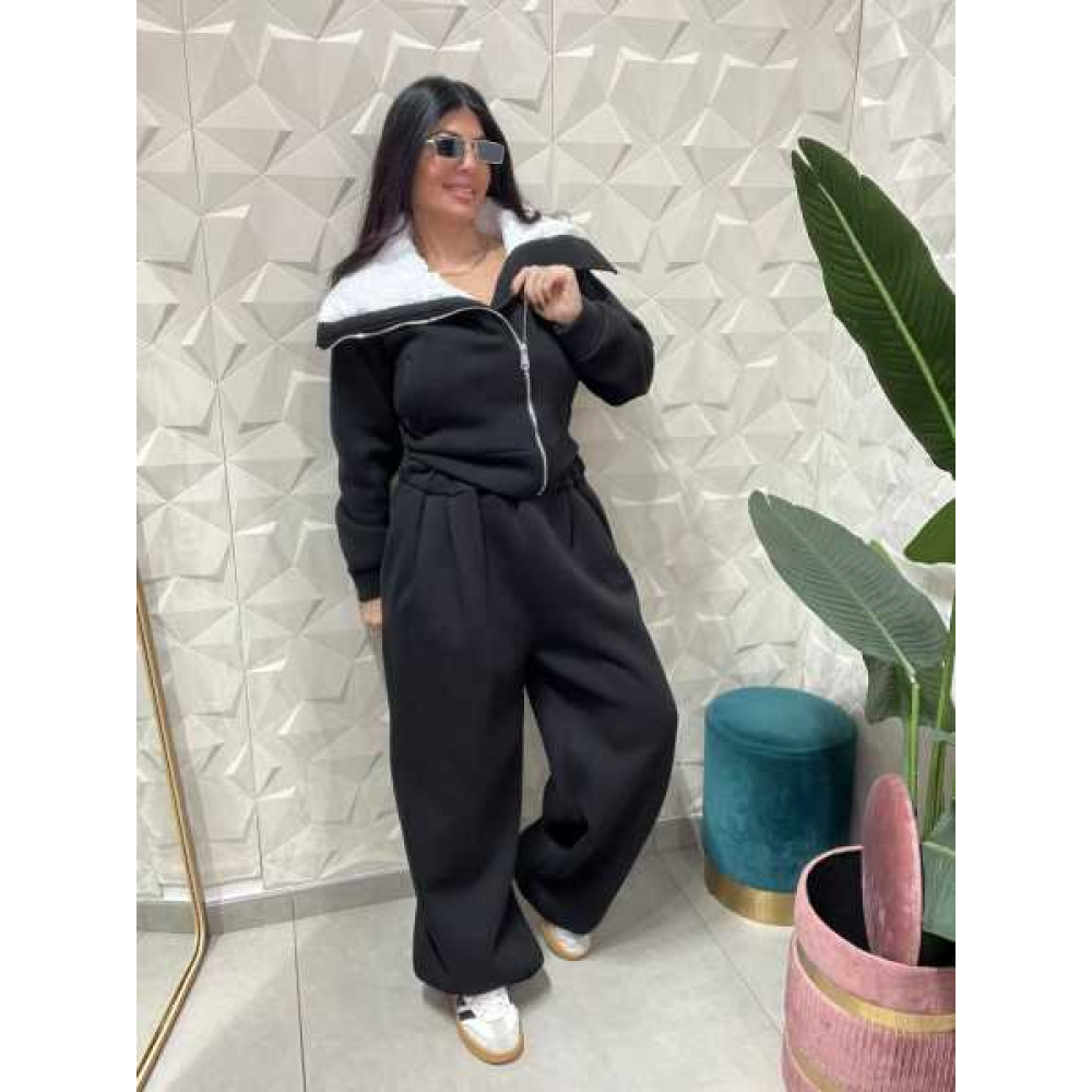 Questo è un completo due pezzi (tuta) in stile casual e comodo, con un design moderno e voluminoso.
