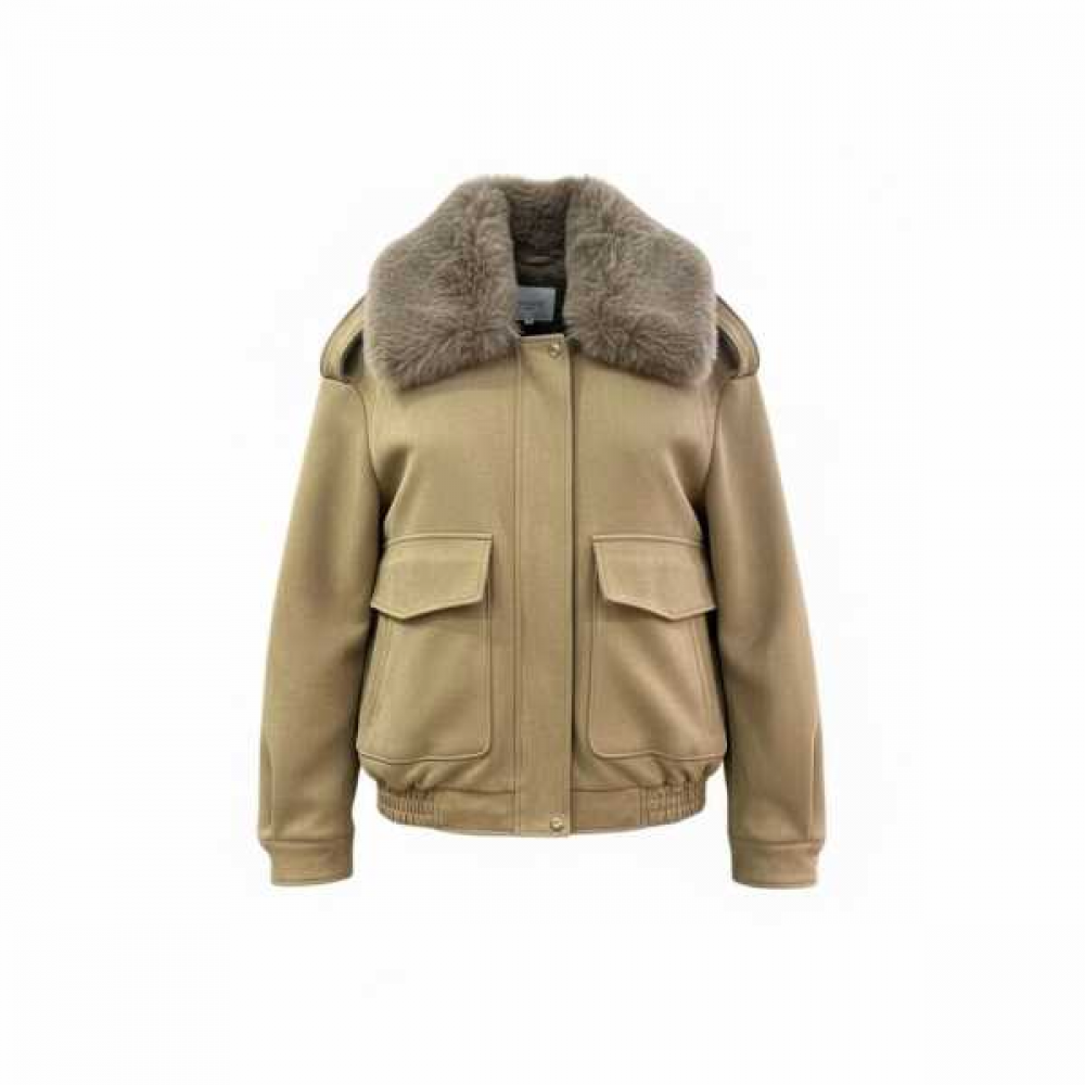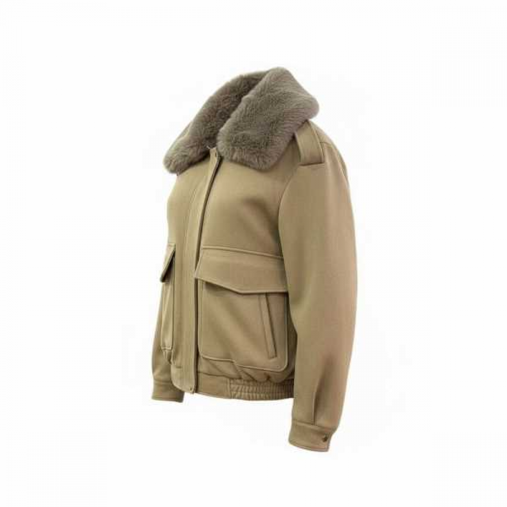 Nel complesso, è una giacca invernale o mezza stagione che combina elementi sportivi (bomber) con dettagli eleganti (il collo in pelliccia).
