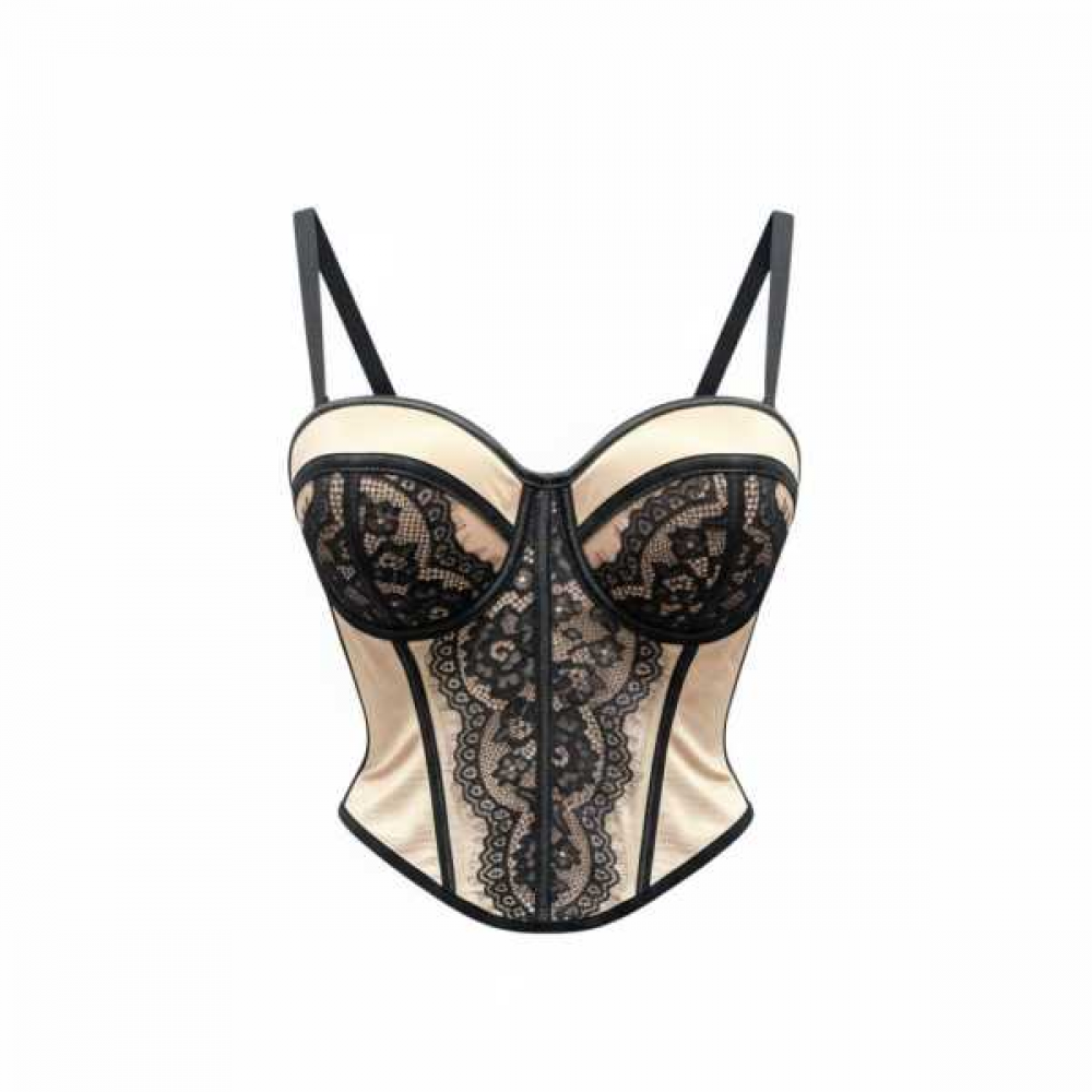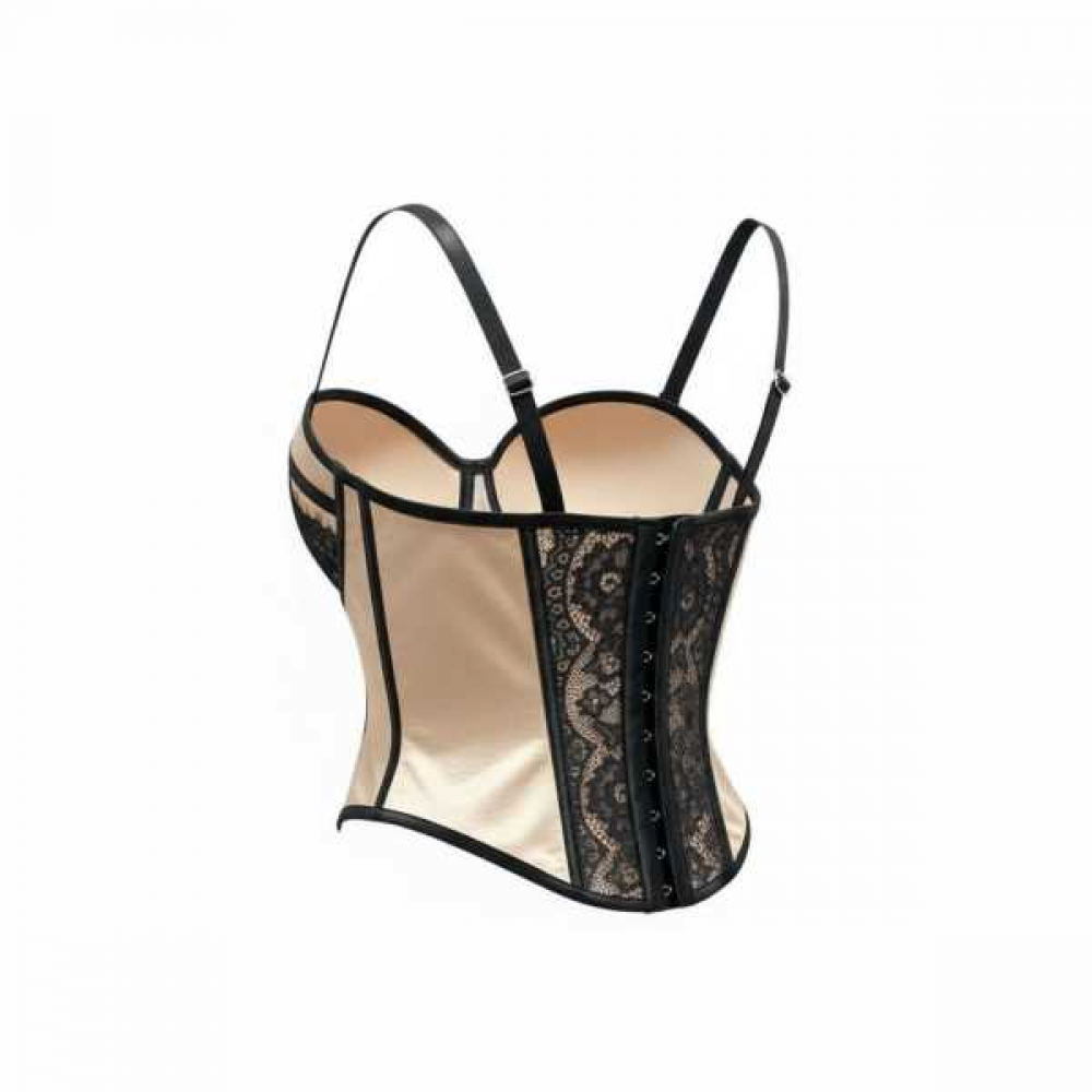 Questo è un corpetto (o bustier) dall'aspetto romantico ed elegante, che richiama lo stile della lingerie di lusso o dell'abbigliamento esterno sofisticato.
