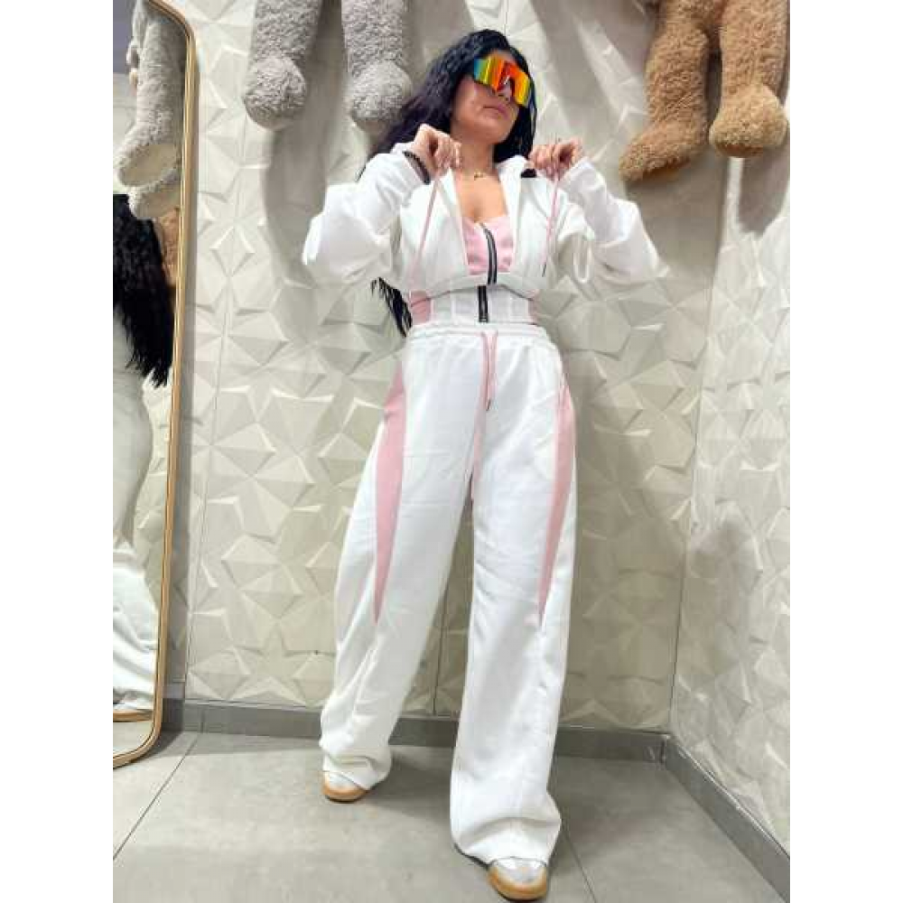 Pantaloni Wide-Leg: Pantaloni a gamba larga dal fit rilassato, con pannelli laterali rosa a contrasto che creano un effetto ottico snellente e allungano la silhouette.