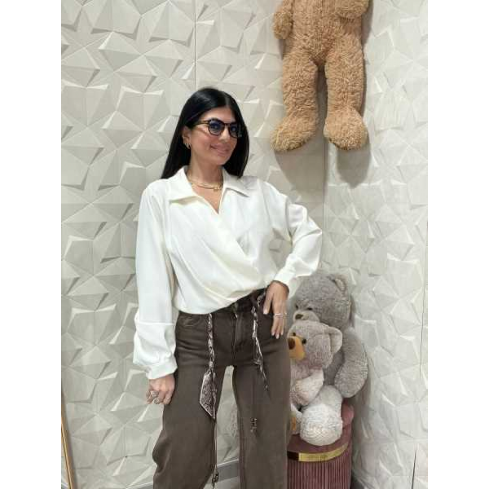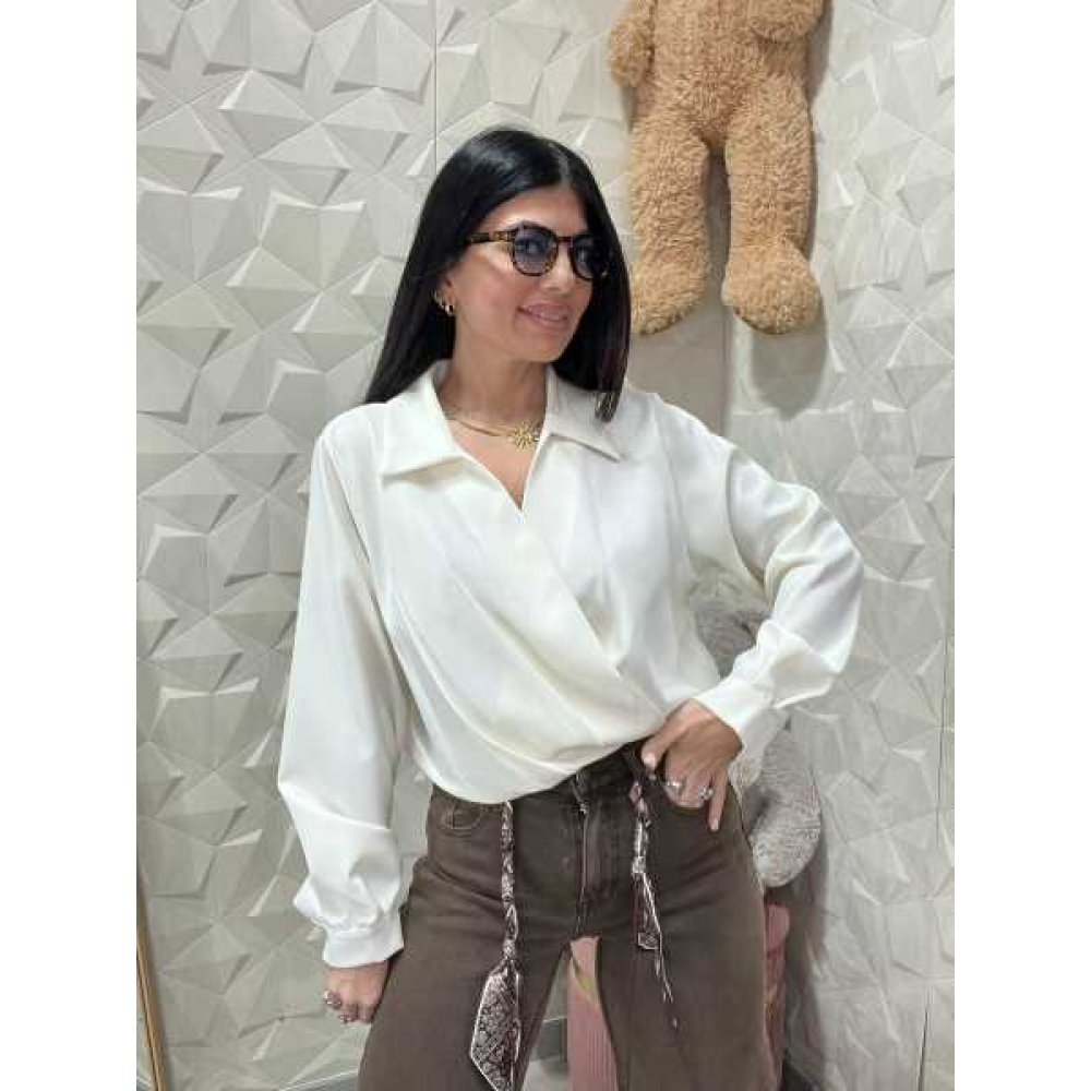 Taglio Classico-Moderno: Il colletto tradizionale si sposa perfettamente con le maniche ampie rifinite da polsini alti, donando un volume armonioso.
