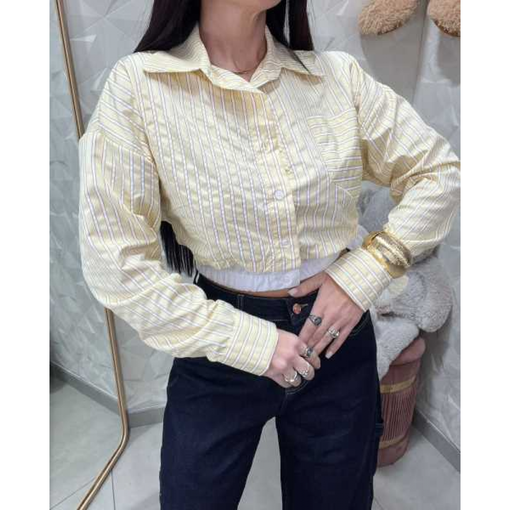 Effetto Layering: L'orlo inferiore presenta una fascia elastica bianca che simula un sottocamicia, aggiungendo struttura e originalità al design.
