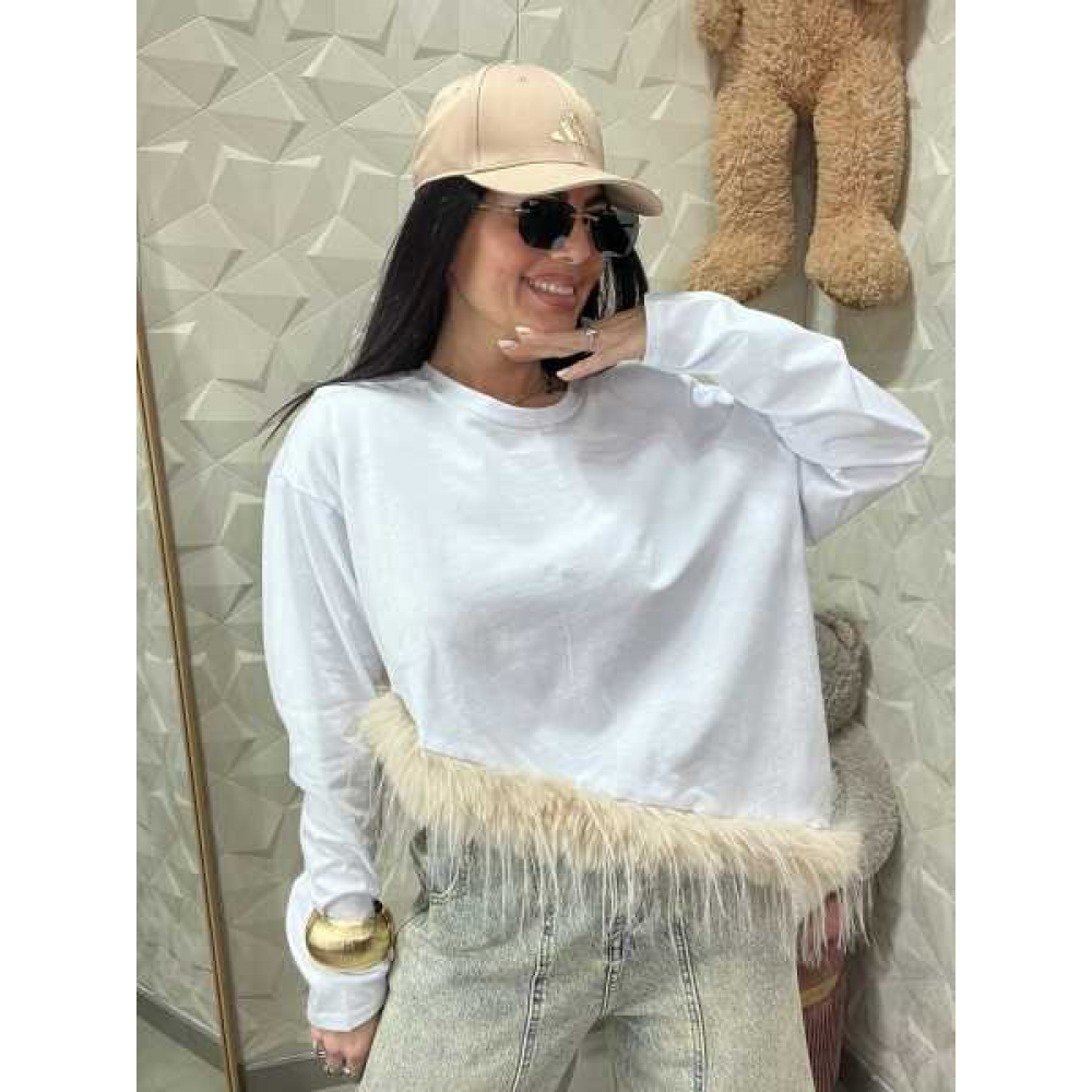 MAGLIA CON TAGLIO DIAGONALE CON AGGIUNTA DI PIUMA E SPALLINE