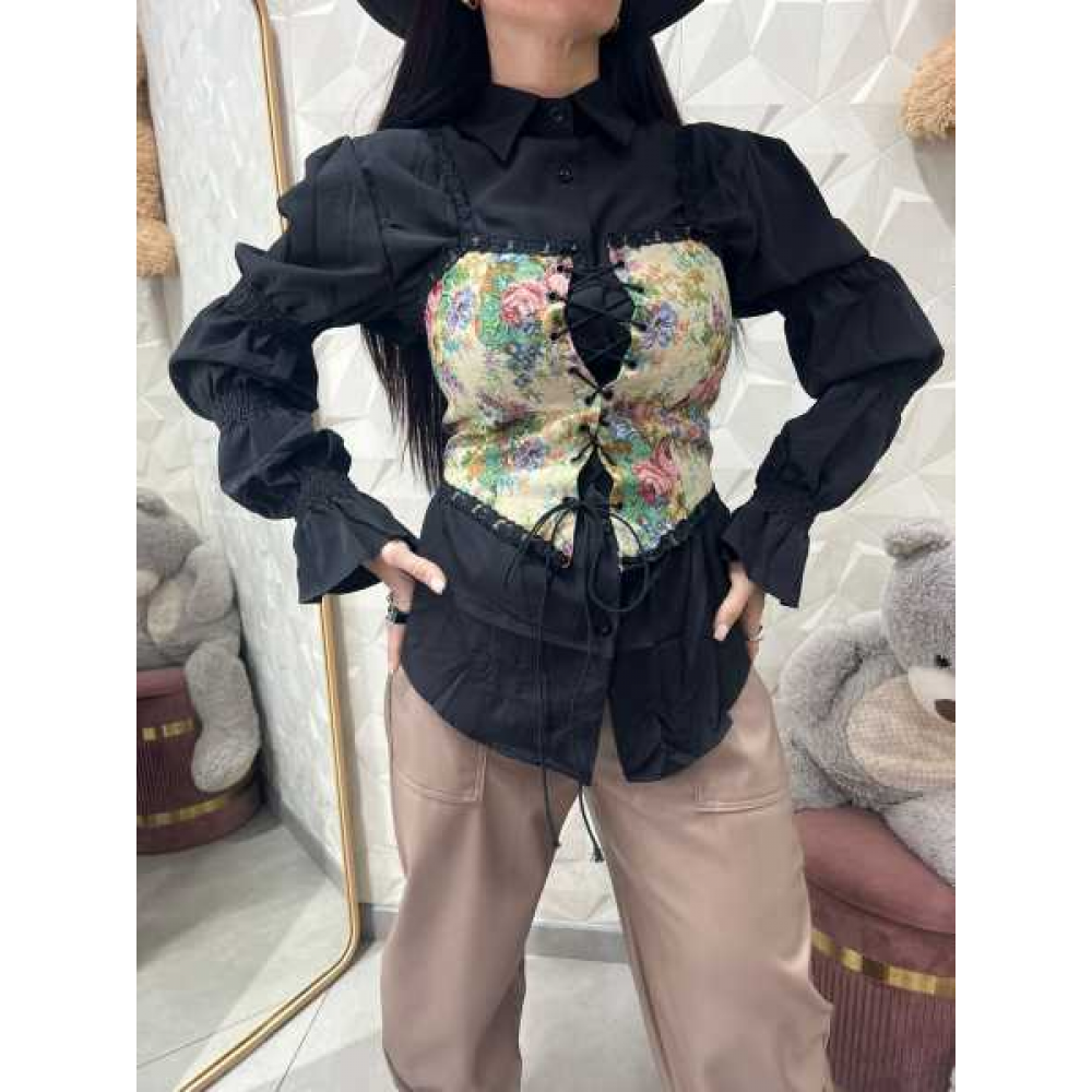 Due in Uno: Il corsetto può essere rimosso, permettendoti di indossare la camicia nera come un capo basic sofisticato o di abbinare il bustino sopra altri capi del tuo armadio.