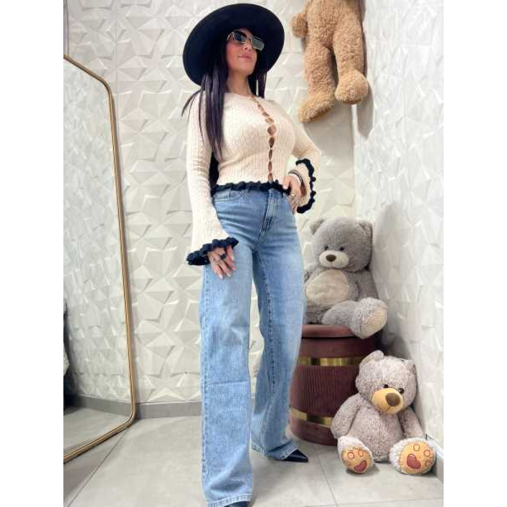 Maniche a Campana: Il taglio svasato sul fondo manica aggiunge un movimento romantico e ricercato, sottolineato dal bordo a contrasto.