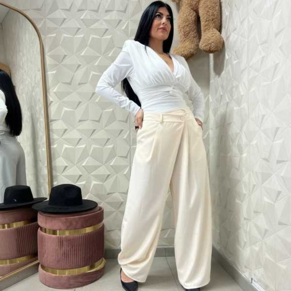 Silhouette Palazzo: Il taglio a gamba extra-larga (wide leg) dona un movimento incredibile ad ogni passo, garantendo una vestibilità fluida che non segna e slancia la figura.