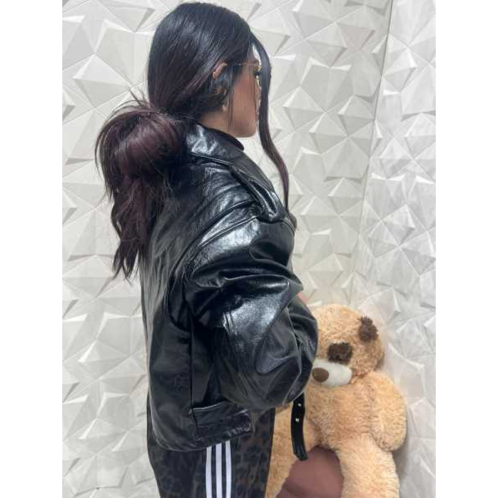 Questa giacca biker oversize è il capospalla definitivo per chi cerca un look grintoso, moderno e di carattere. Realizzata in ecopelle di alta qualità con una sofisticata finitura semilucida, combina il design classico del "chiodo" con volumi contemporanei e una tonalità verde bosco profonda e magnetica.