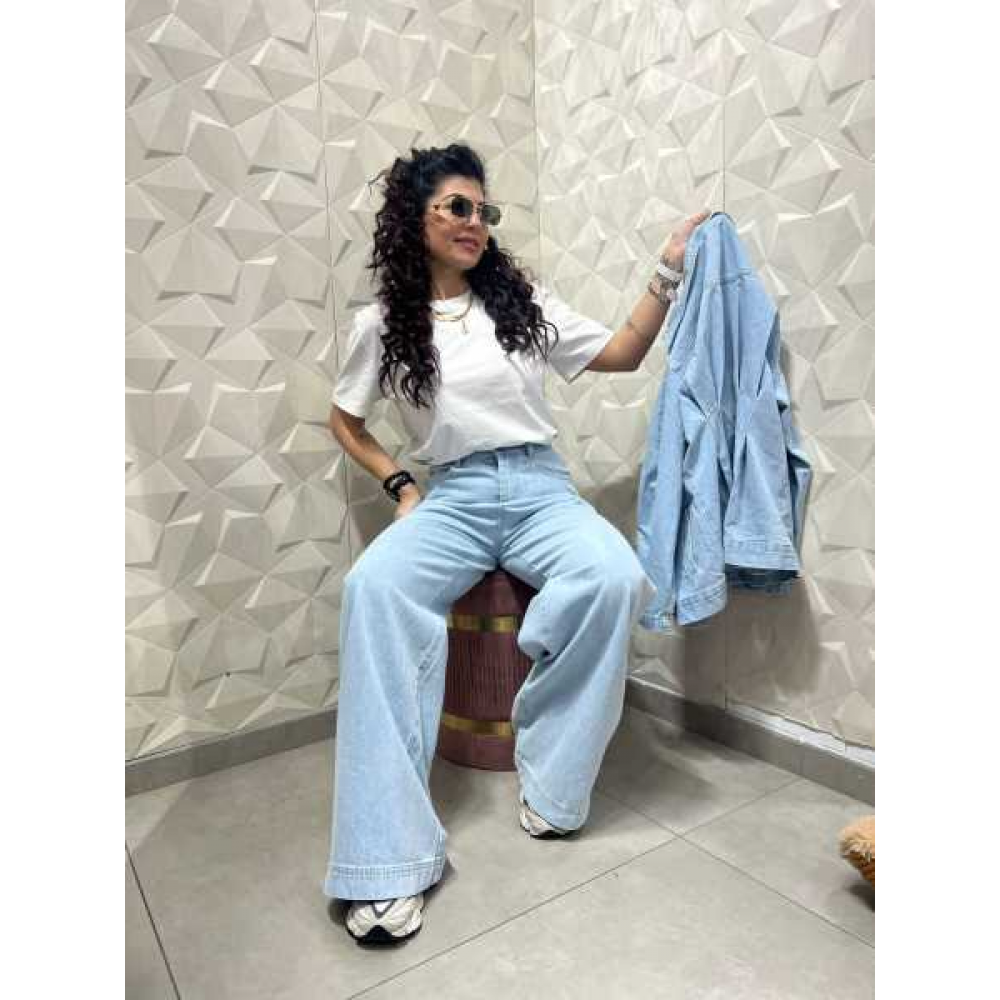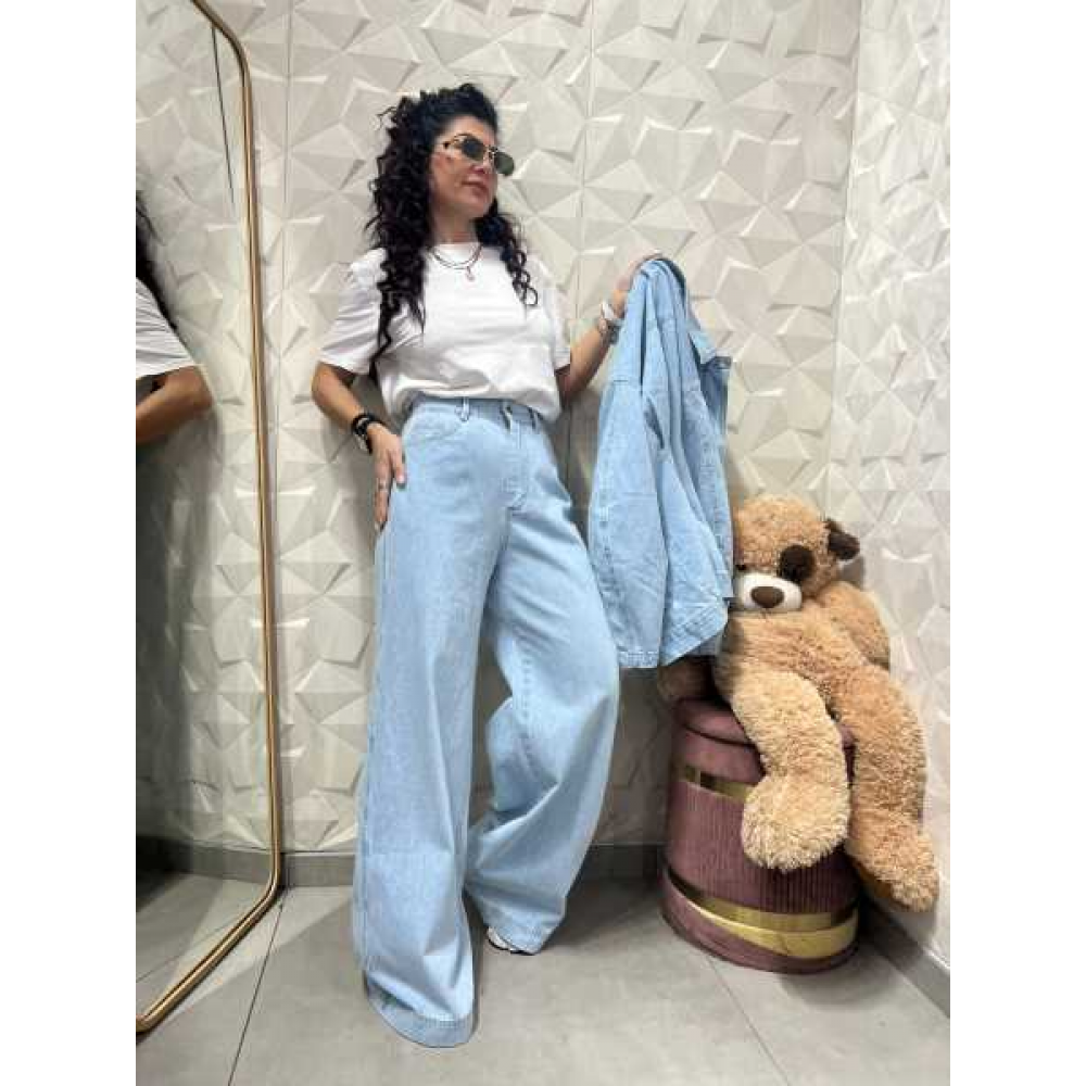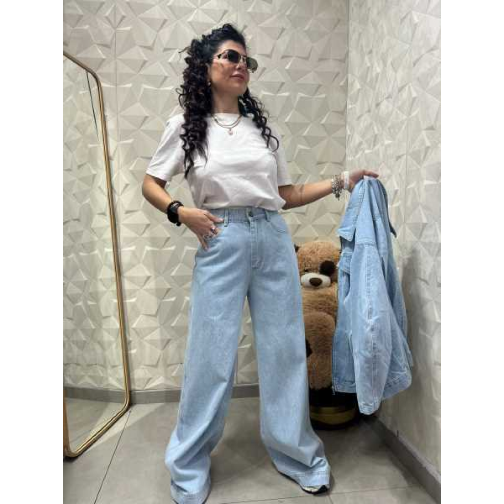 Taglio Wide-Leg: Si tratta di jeans a gamba larga e dritta, che scendono fluidi fino a coprire quasi interamente le scarpe.