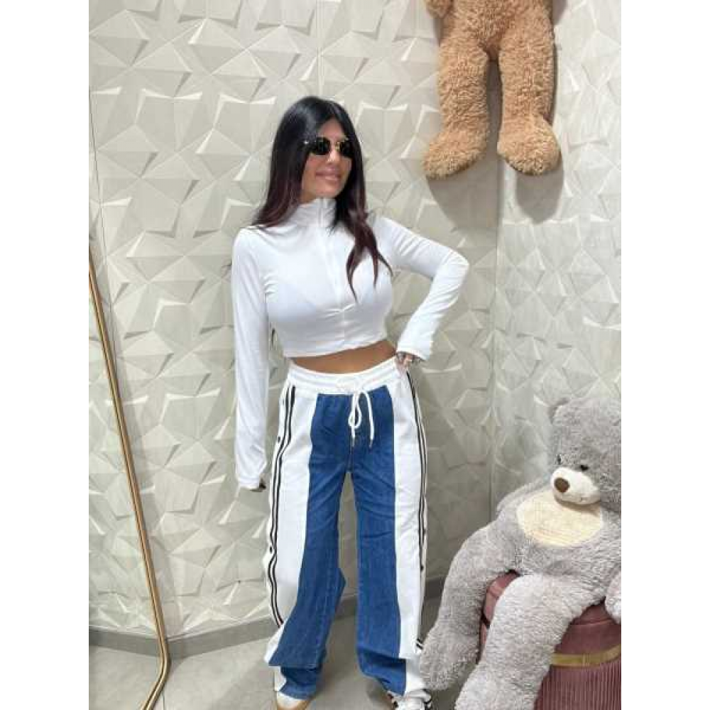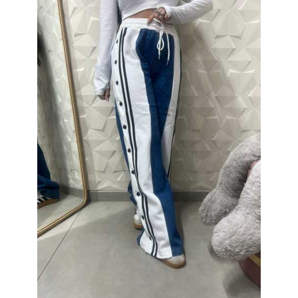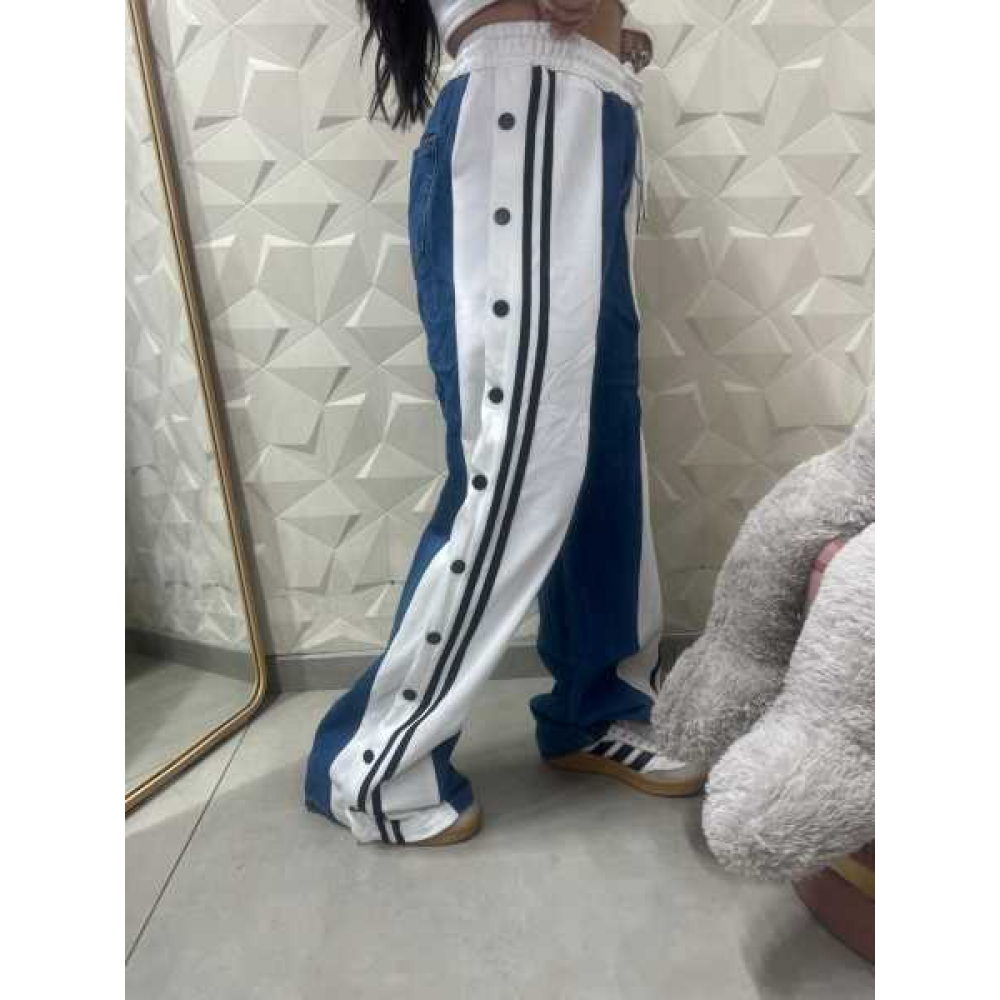 Snap Buttons: Bottoni a pressione lungo tutta la gamba (stile tuta acetata) che permettono di giocare con l'apertura del fondo.