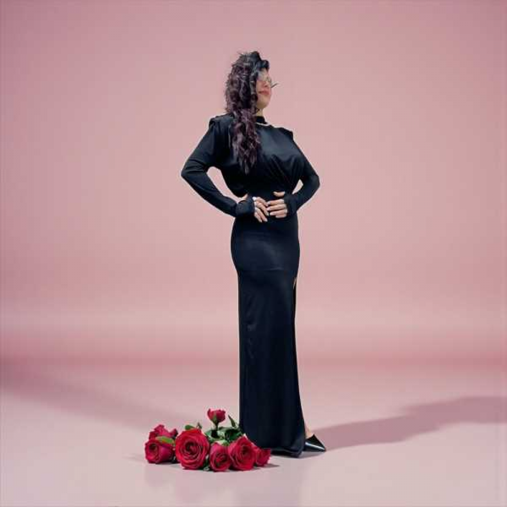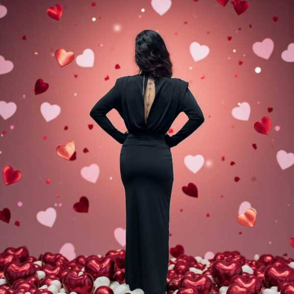 Spalline Strutturate e Drappeggio: Le spalline leggermente imbottite creano una linea definita, mentre il morbido drappeggio sul corpino aggiunge volume e movimento al tessuto nero opaco.