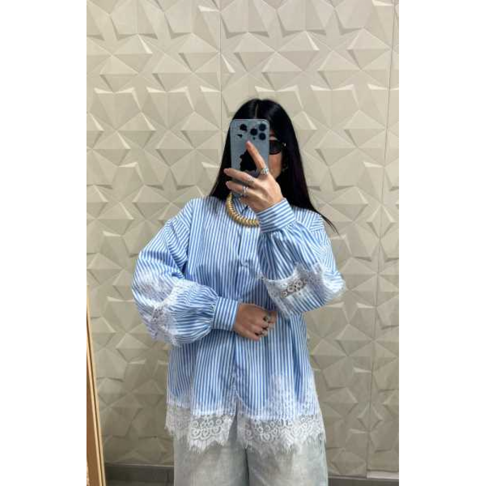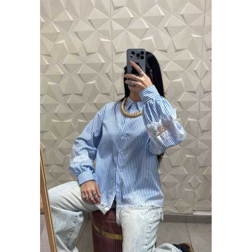 Maniche a Sbuffo: Le maniche ampie terminano in polsini alti a contrasto, creando un volume armonioso che enfatizza gli intarsi in pizzo.