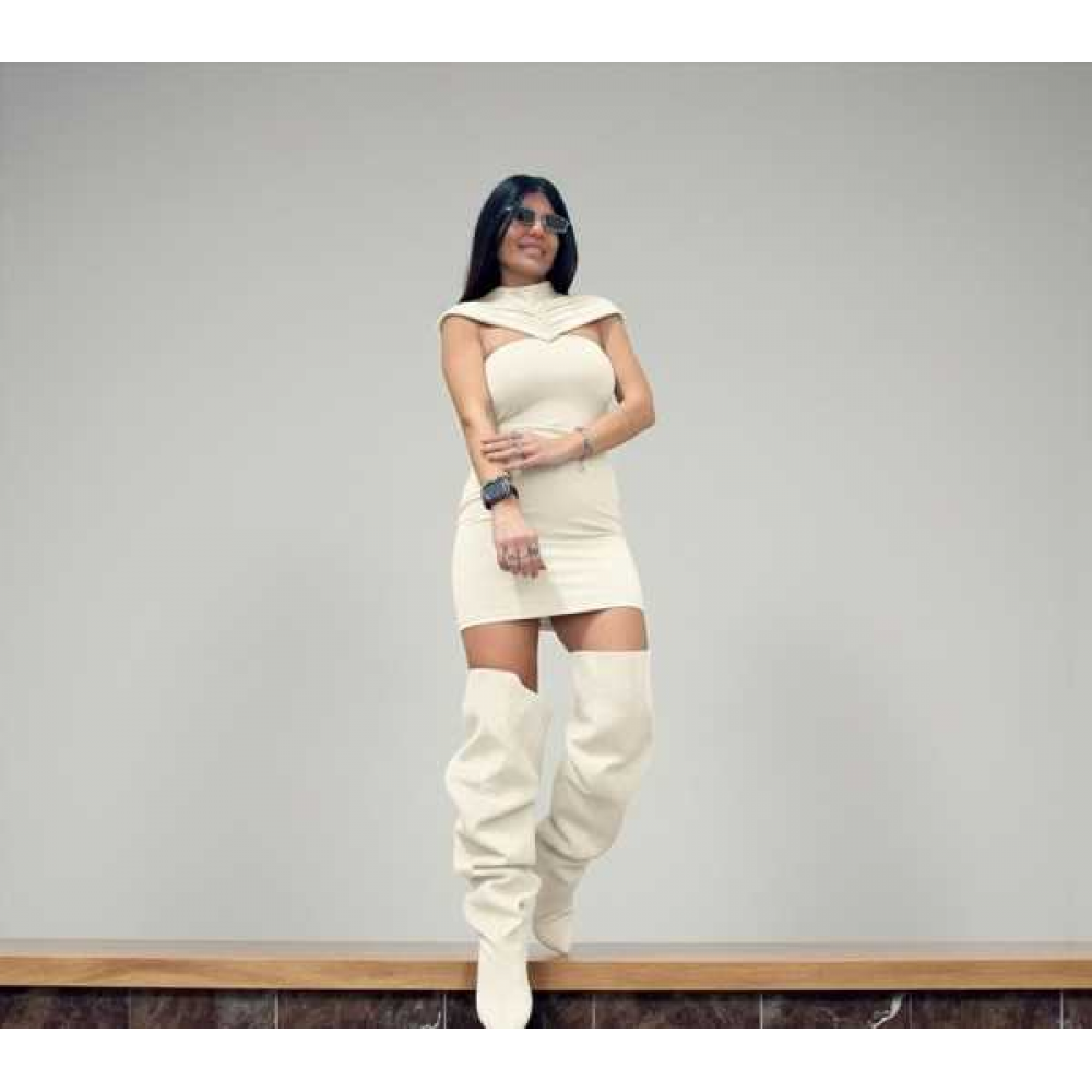 Effetto Bodycon: Realizzato in un tessuto compatto ed elasticizzato che avvolge le forme come una seconda pelle, modellando la figura in modo impeccabile.
