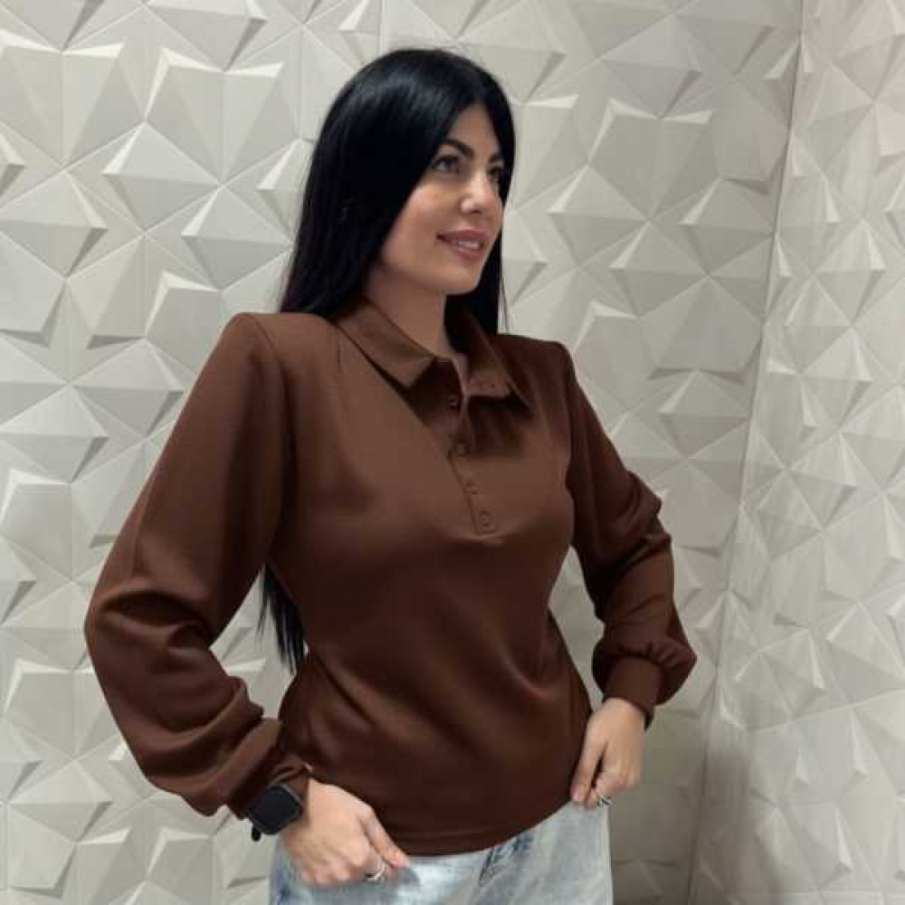 Design Sofisticato: Il colletto classico a camicia e la chiusura frontale con tre bottoni conferiscono un tocco ordinato e professionale.