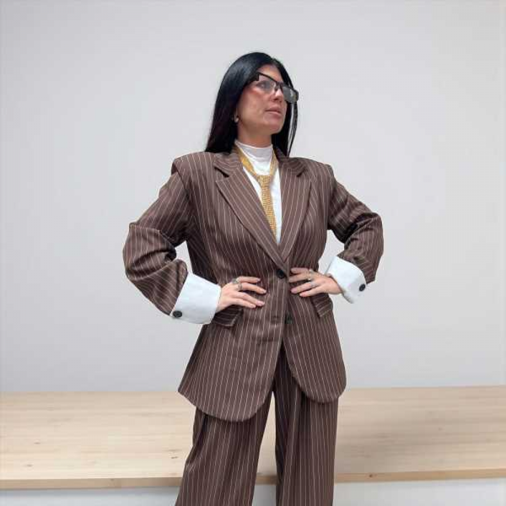 Il blazer presenta un taglio oversize strutturato, pensato per chi ama le silhouette decise ma fluide.