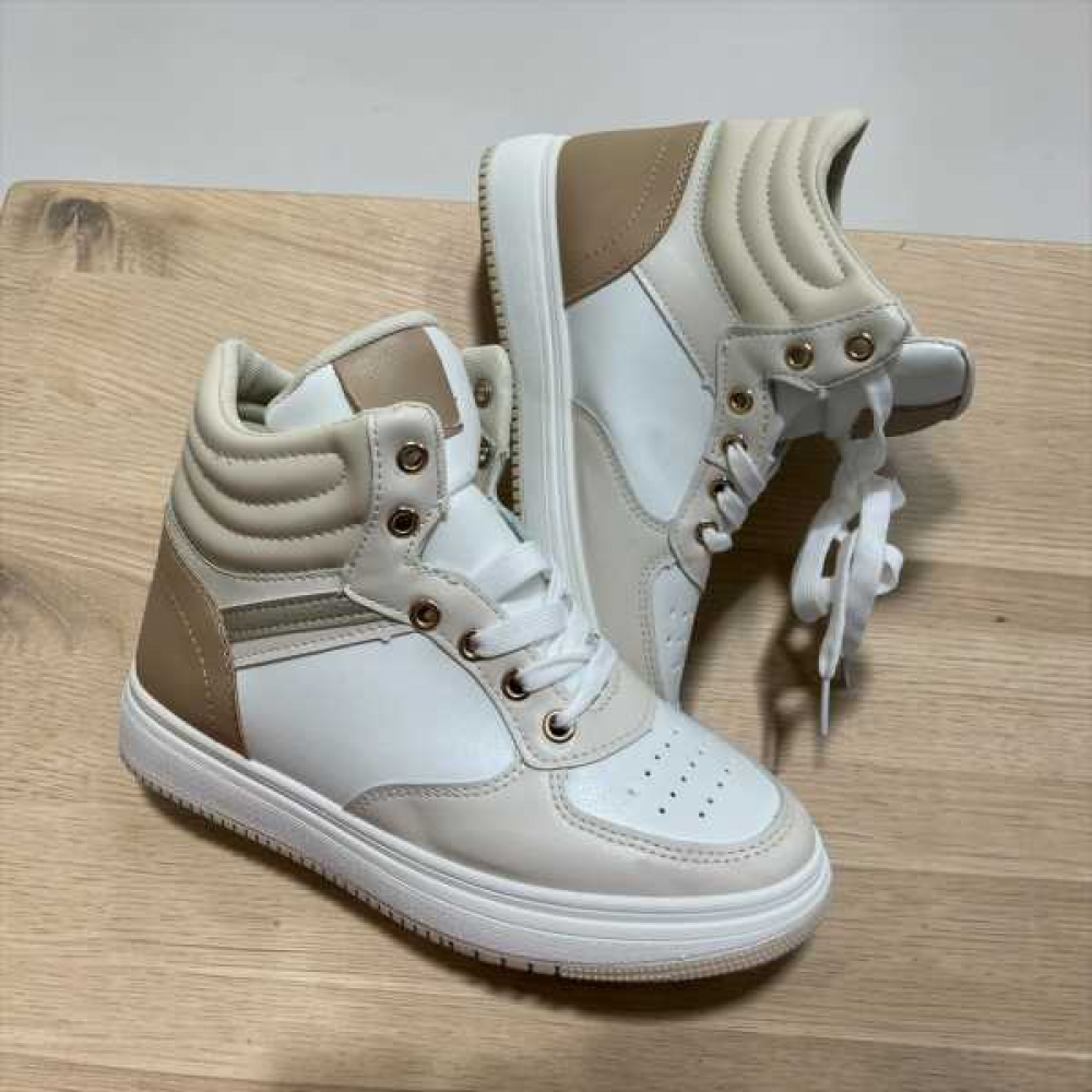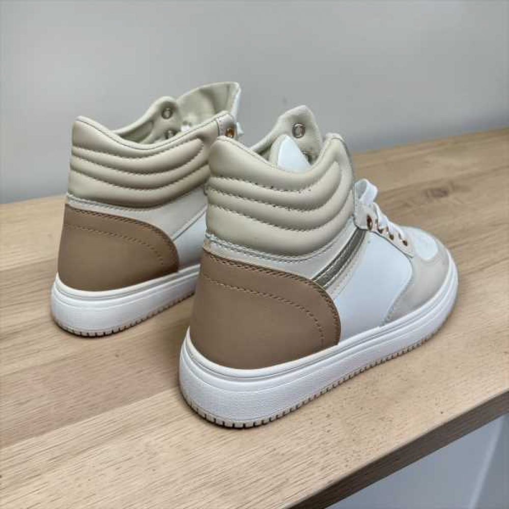 Questa sneaker alta (high-top) combina un'estetica sportiva classica con una palette di colori neutri e sofisticati, ideale per chi cerca comfort senza rinunciare allo stile urbano
