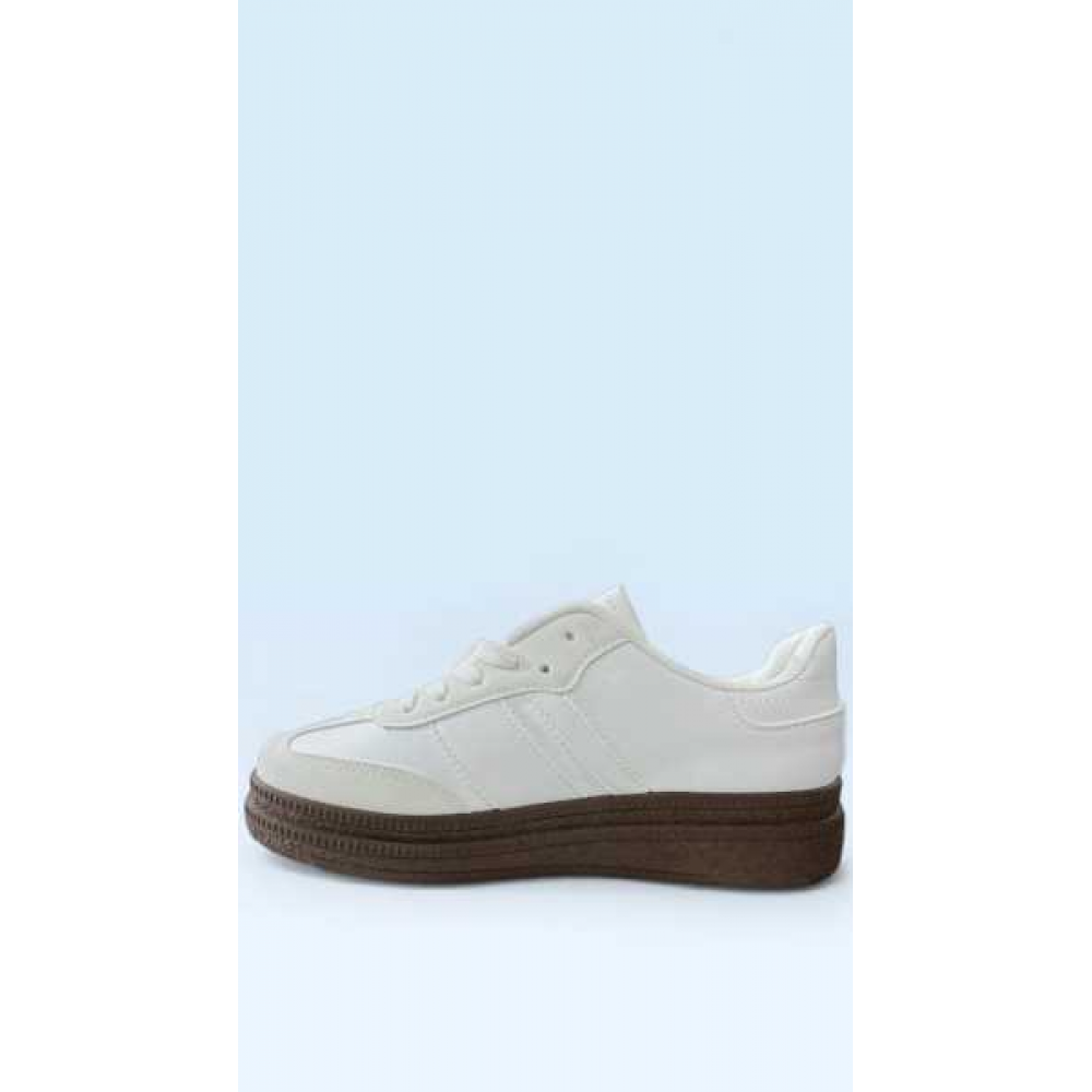 Tomaia Multi-materiale sint : La scarpa combina pannelli in ecopelle bianca con inserti in scamoscia..