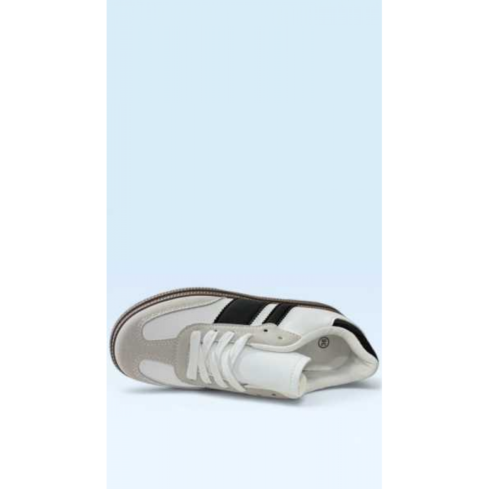 Tomaia Multi-materiale sint : La scarpa combina pannelli in ecopelle bianca con inserti in scamoscia..