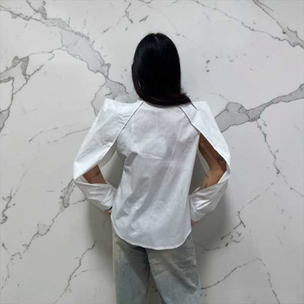 Volume Trasformabile: Le maniche lunghe terminano con polsini classici, creando un effetto scenografico a "mantella" quando le braccia sono visibili attraverso i tagli.