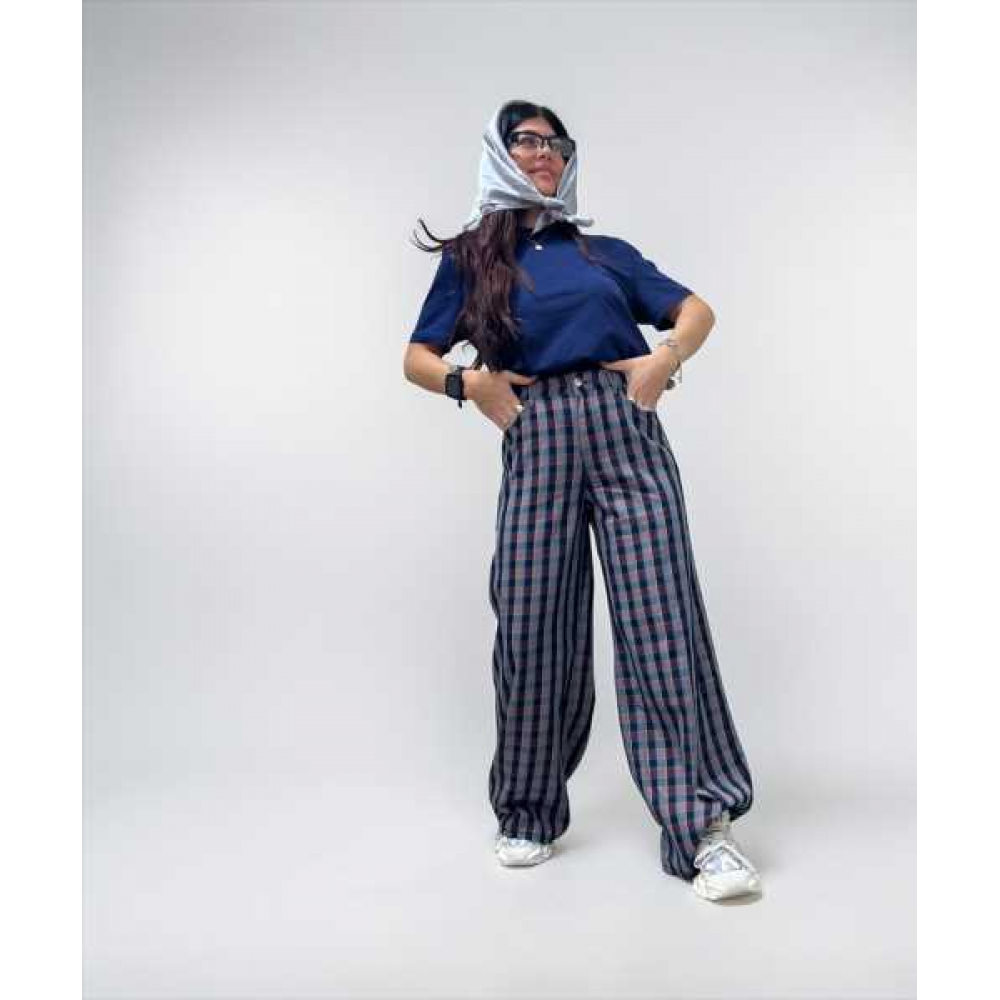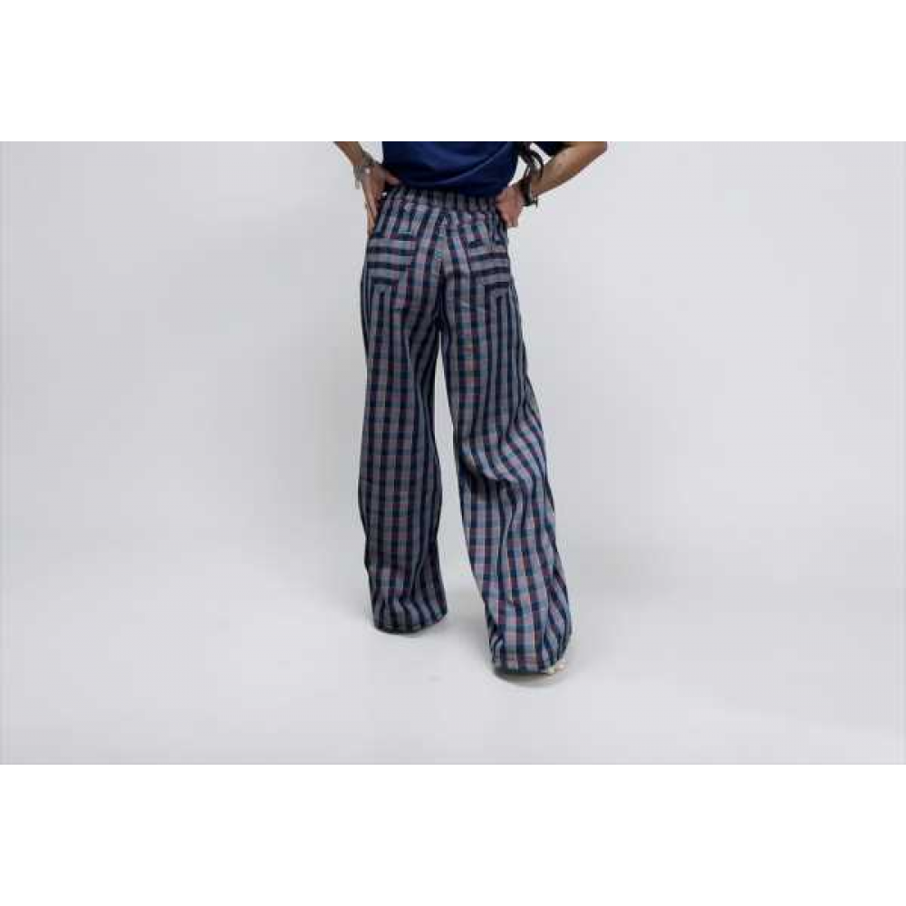 Pantaloni a gamba larga a quadri viola/blu navy
