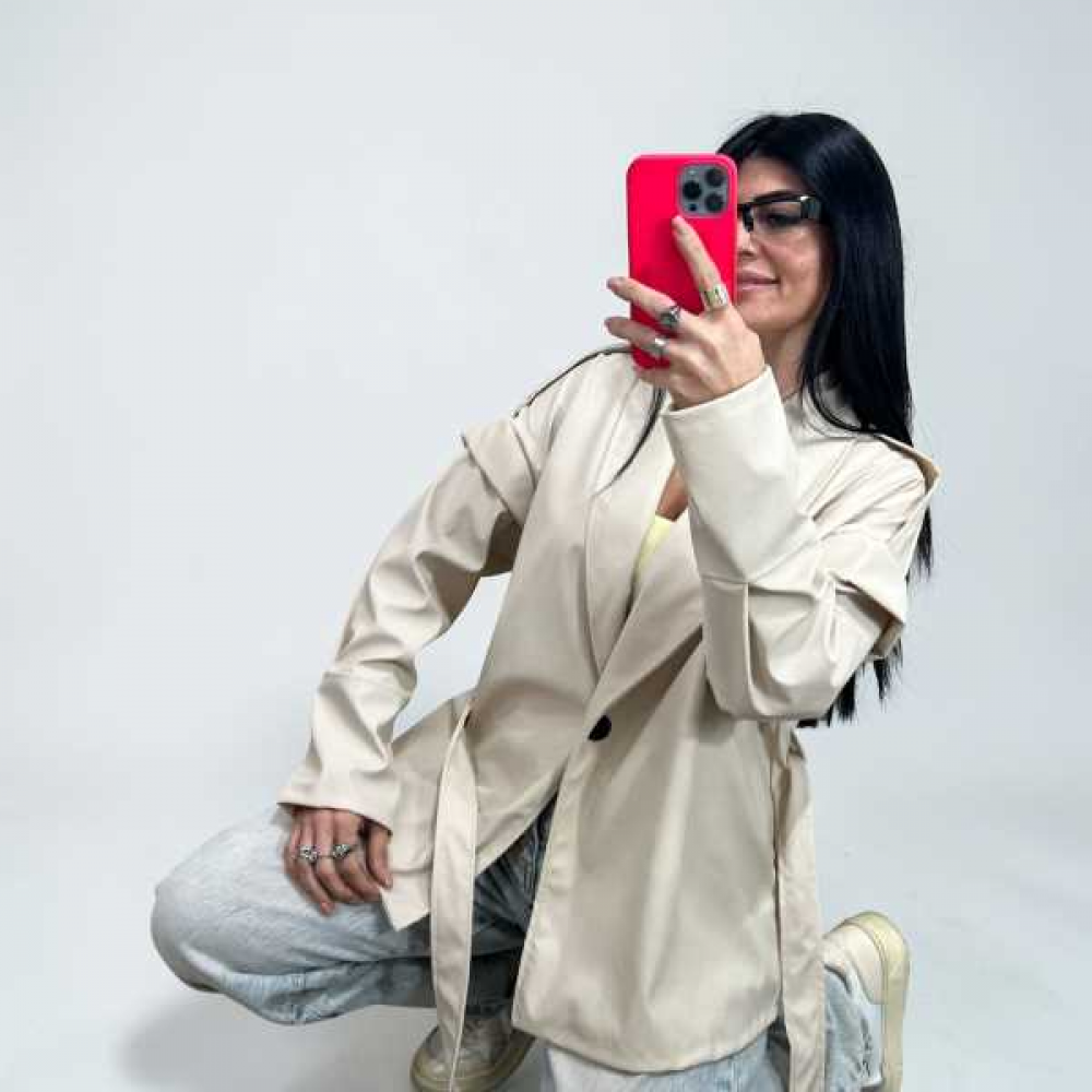 mini trench di pelle con manica ampia