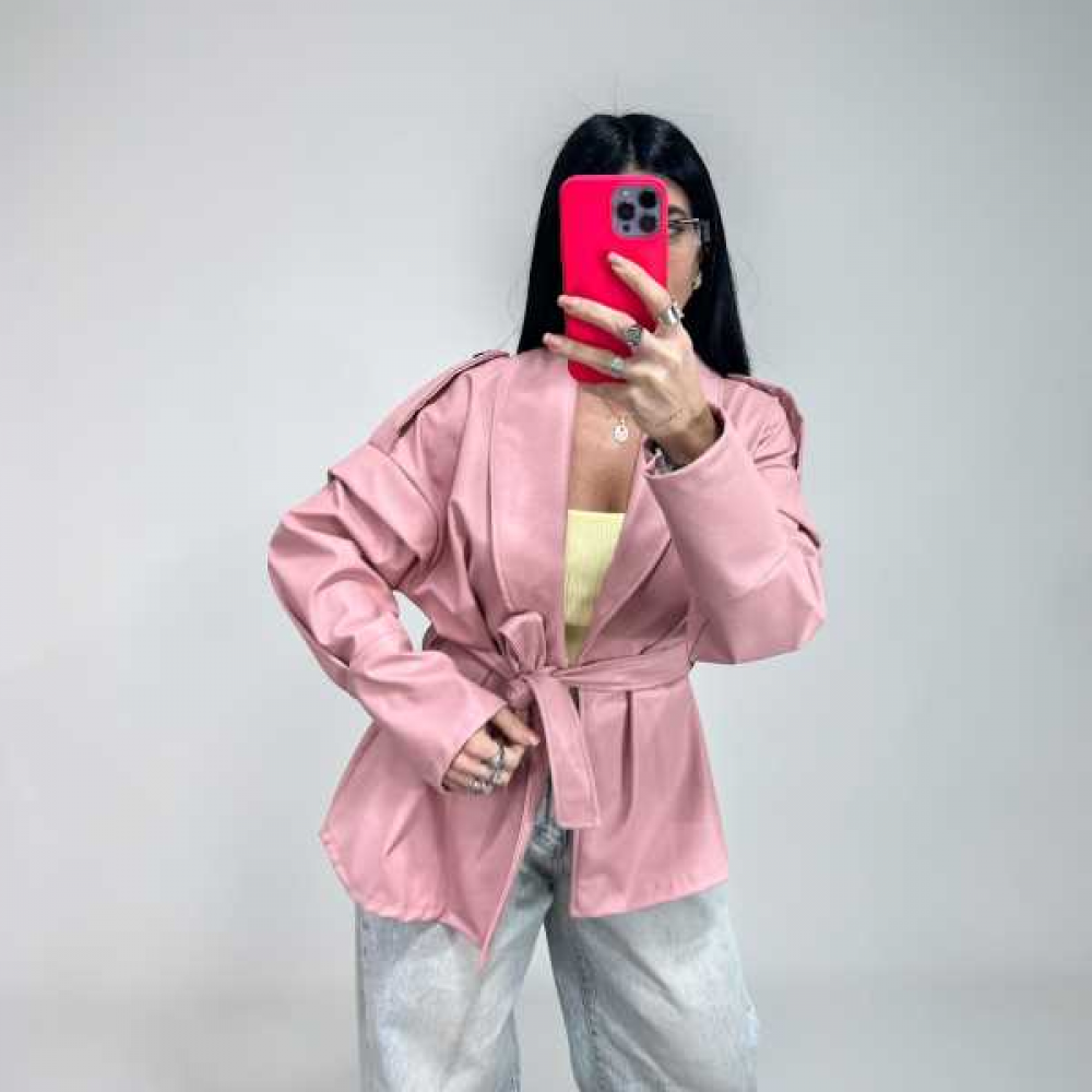 mini trench di pelle con manica ampia