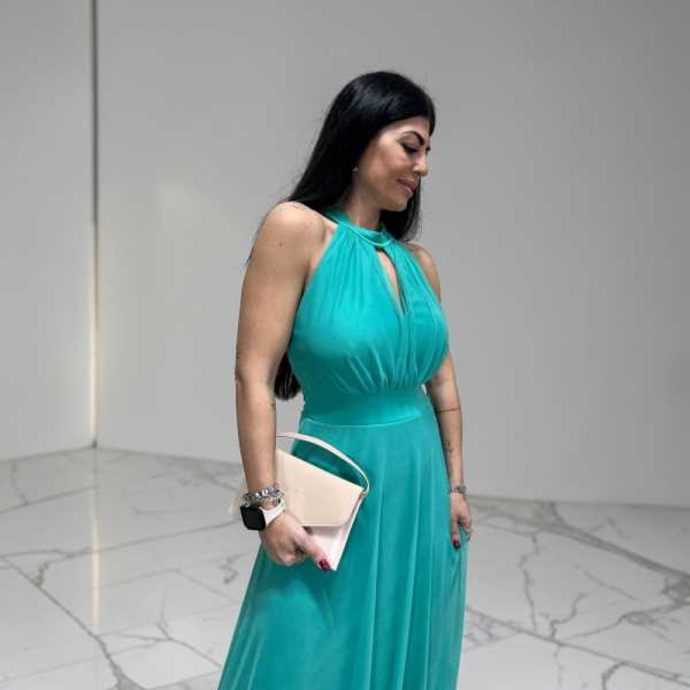 Abito MONICA - Abito lungo in chiffon con scollo all’americana