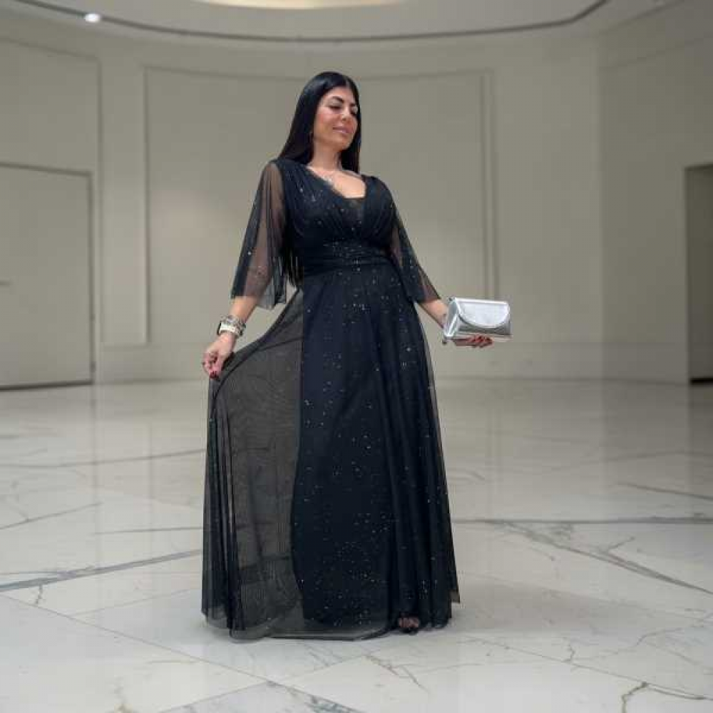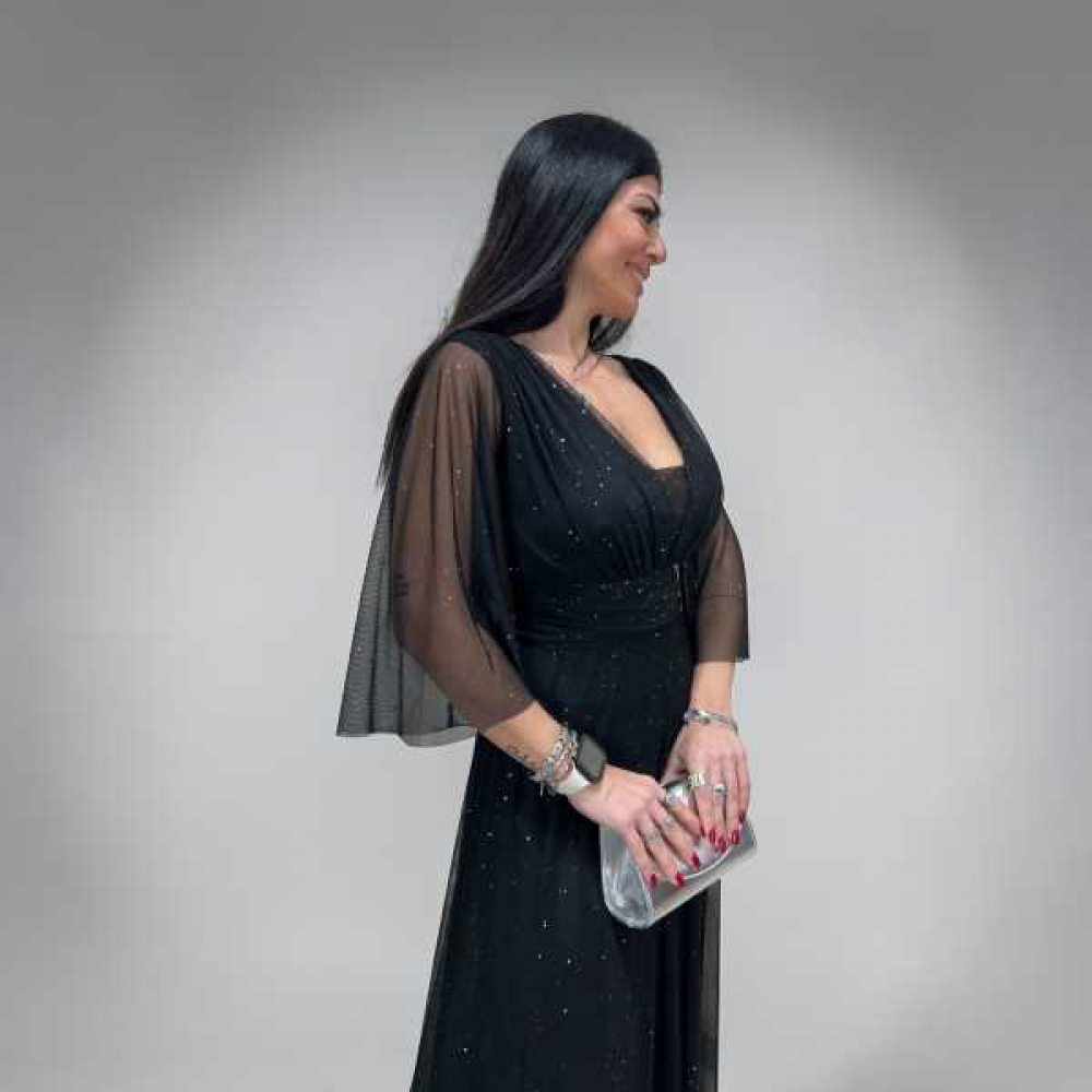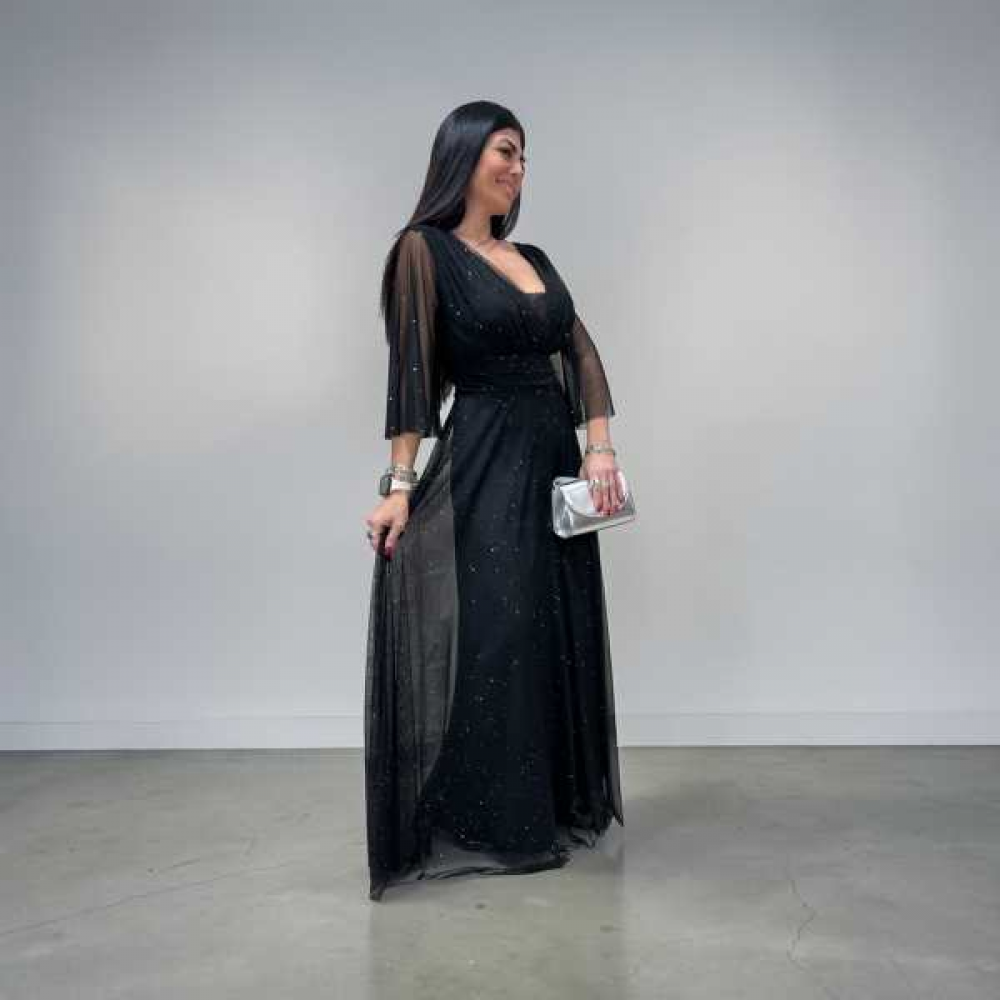 abito lungo elegante con micro brillantini
