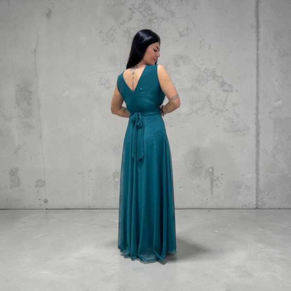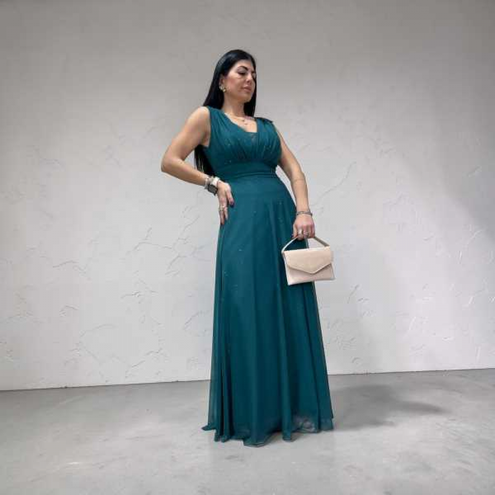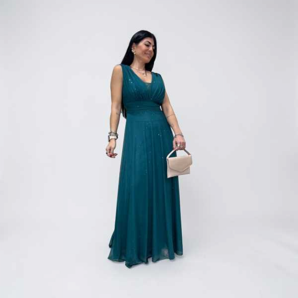 Abito elegante lungo con coppe preformate. Elasticizzato in vita