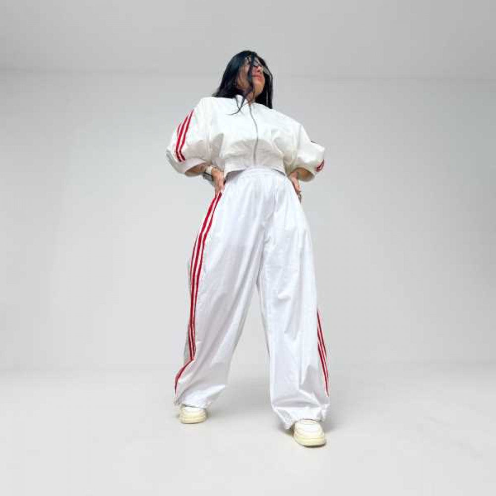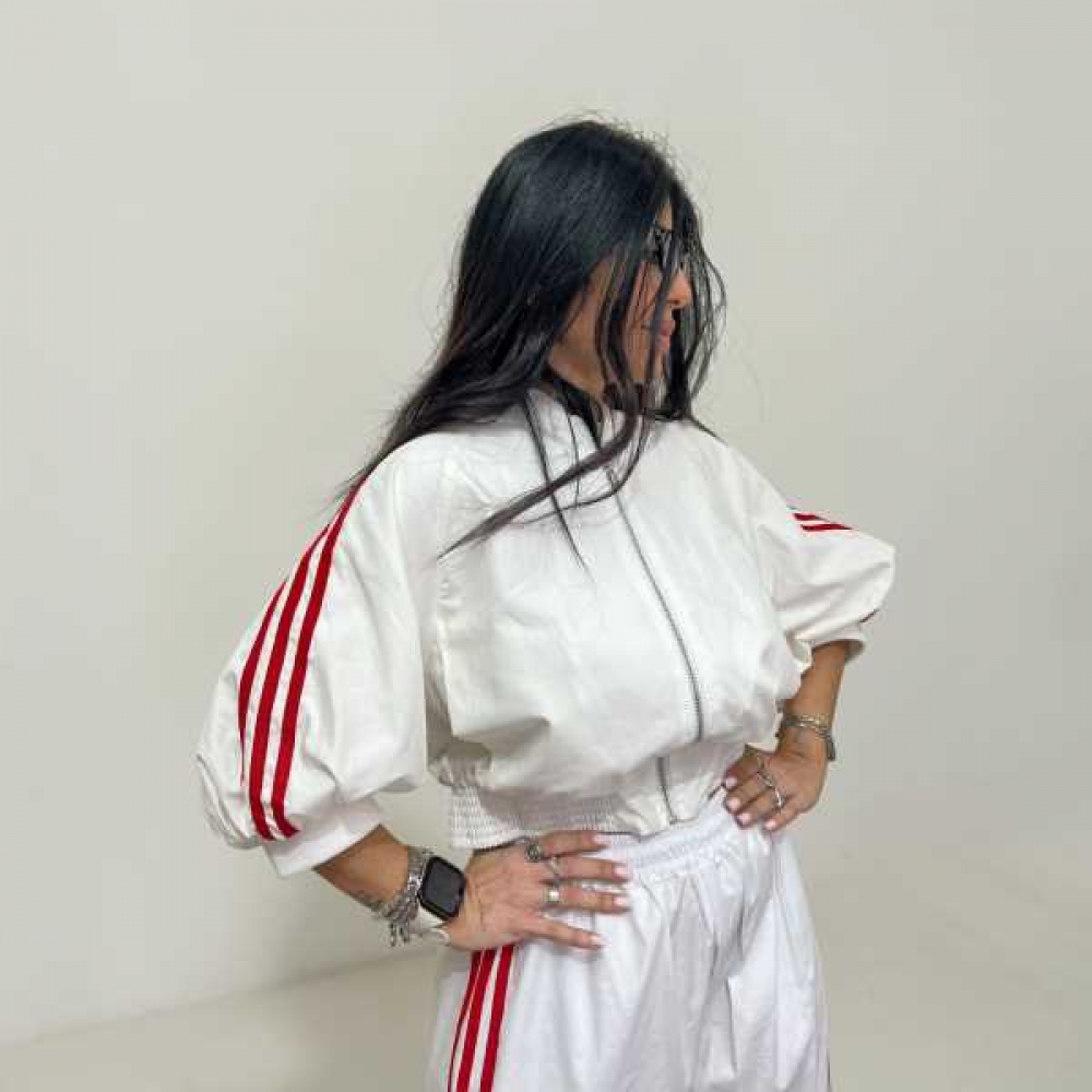 Bomber cropped sportiva con bande laterali a contrasto.