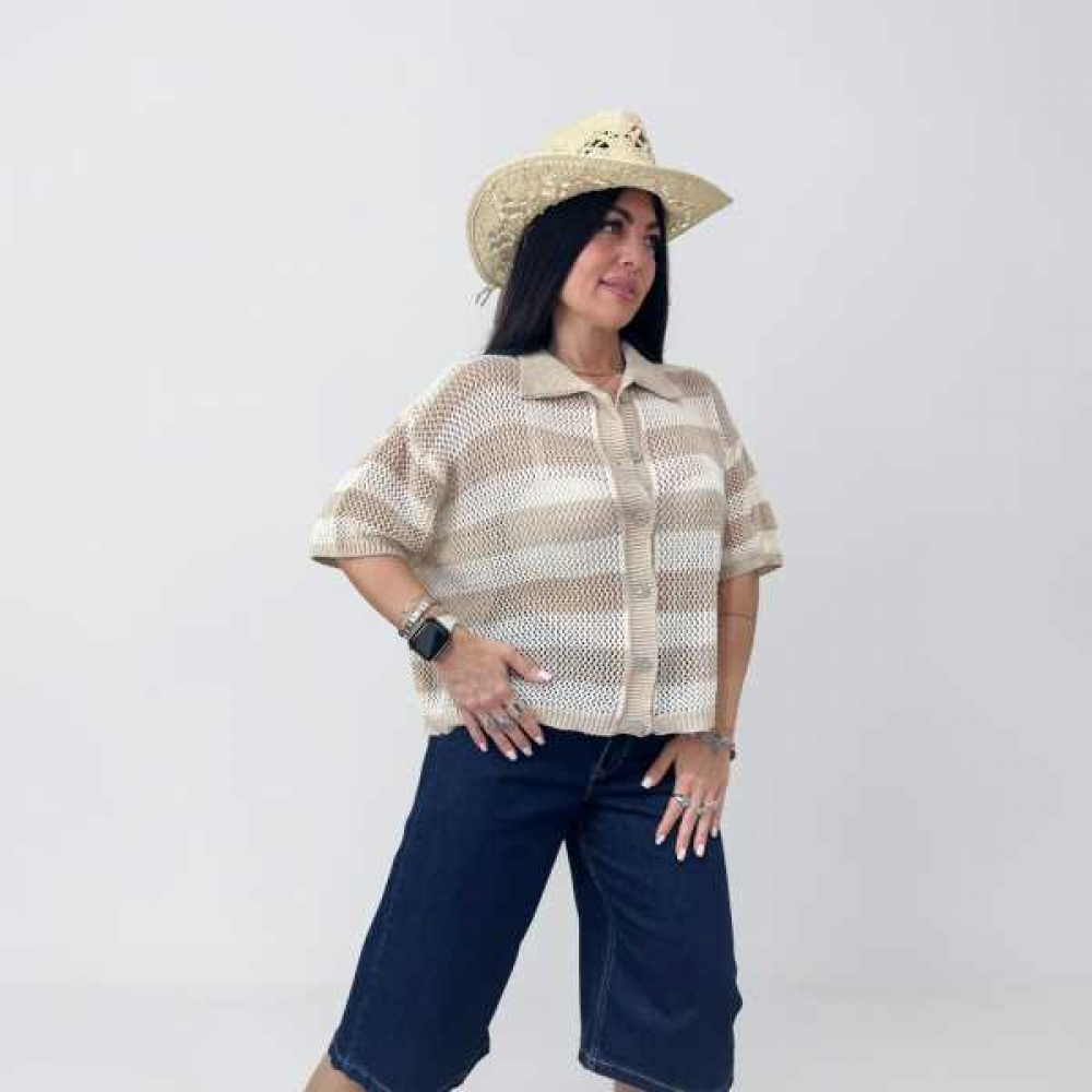 Polo a righe traforata con tessuto elasticizzato.